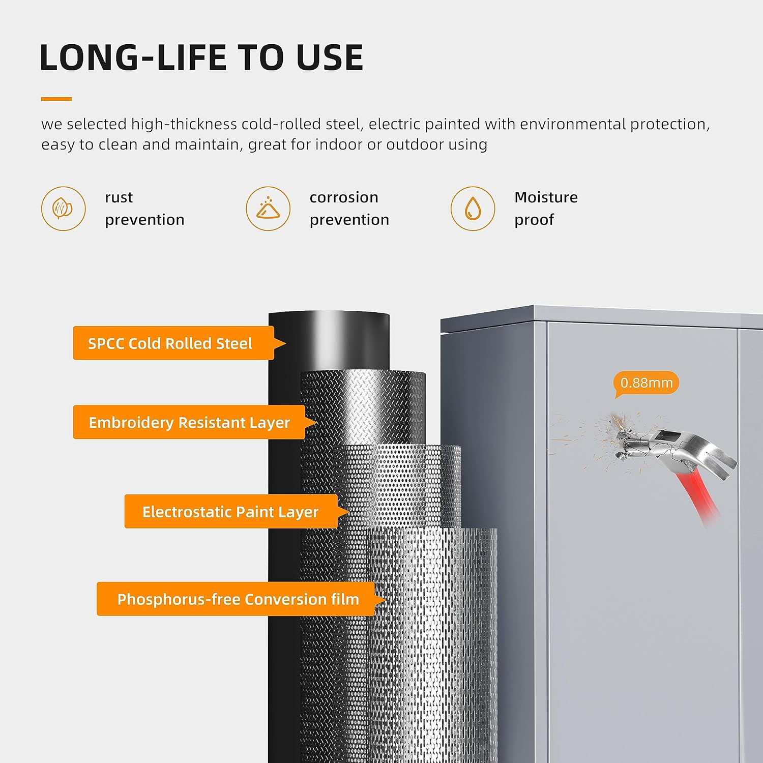 • 『Multi-scene』: Cement grey metal storage cabinet with locking doors is perfect for storing large quantities of items, this large steel storage cabinet adds extra space to any room and can be used in home office, garage, basement, etc.