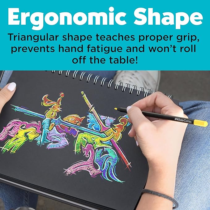 • ERGONOMIC COLORING PENCILS: Faber-Castell colored pencils are pre-sharpened and feature a triangular shape, ensuring the correct grip position with optimum comfort and preventing hand fatigue when drawing and coloring. Just add creativity to bring your adult coloring books, drawings and sketches to life with brilliant color
