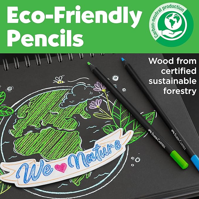 • MADE FROM REFORESTED WOOD: An eco-friendly artist gift and art drawing supplies for adult coloring, Faber-Castell colored pencils feature high quality wood and pigments, proudly manufactured with reforested pencil wood grown in FSC-certified sustainable forests