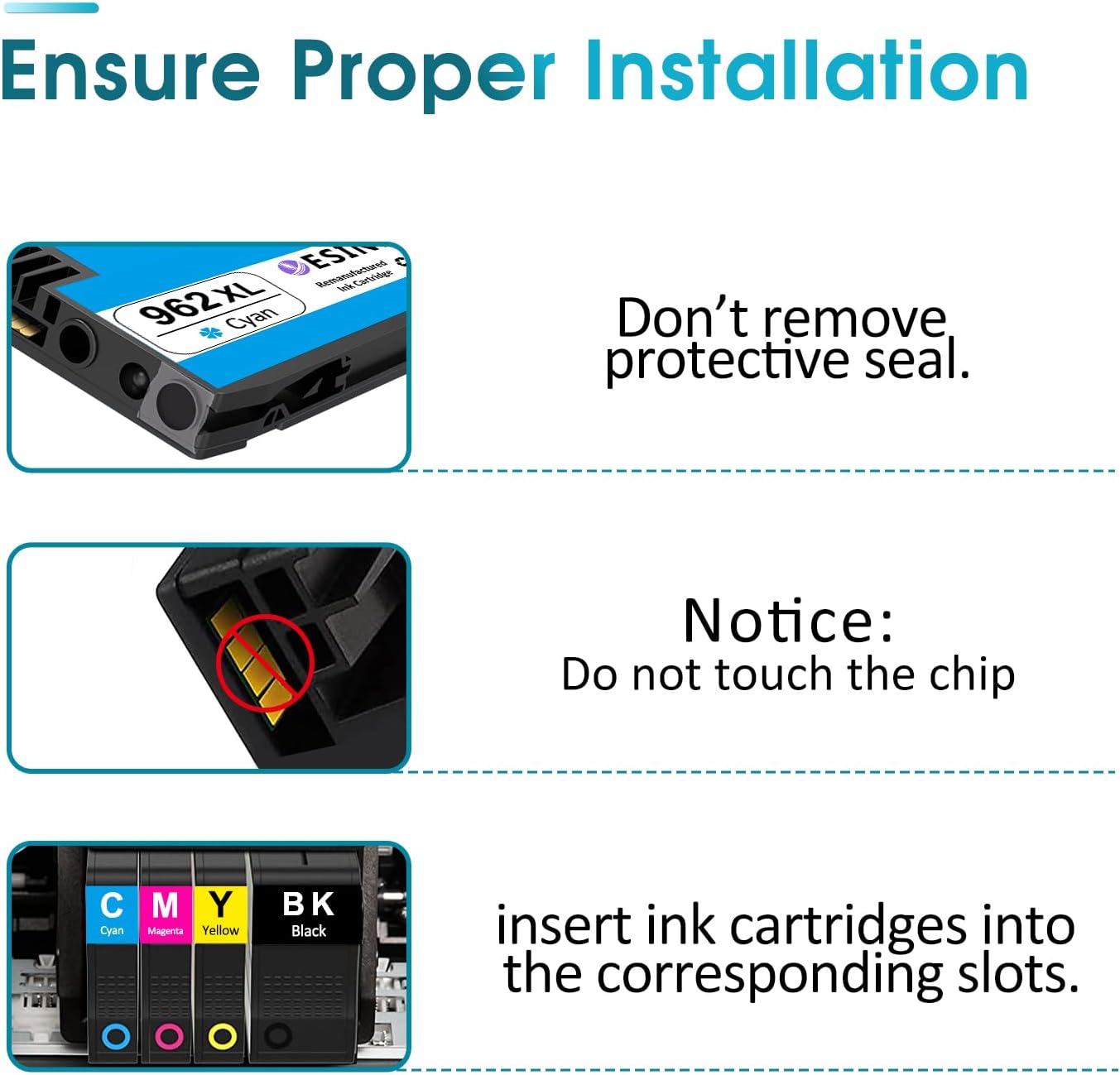 • Package Contents: Compatible for hp 962 962xl Ink Cartridge Combo Pack ( 1 Black,1 Cyan,1 Magenta,1 Yellow).