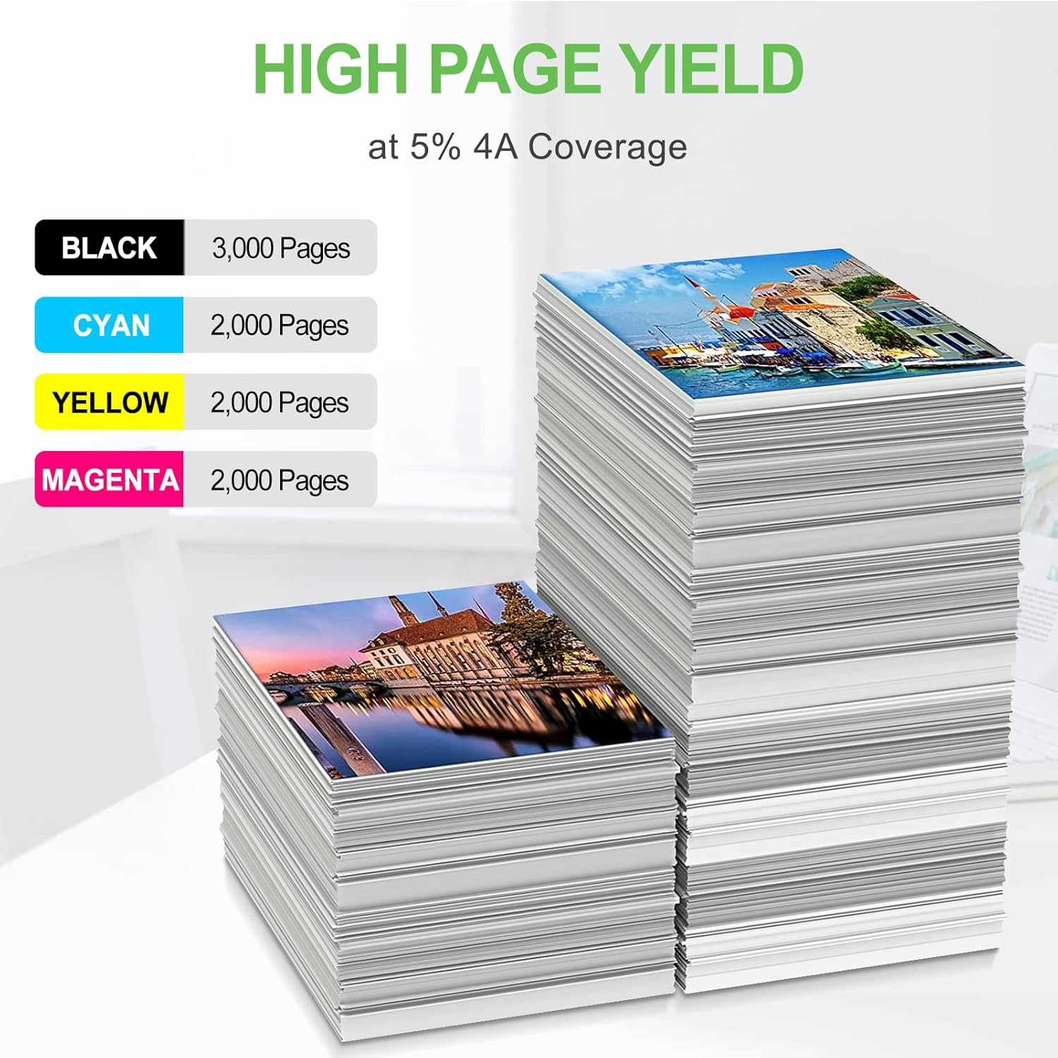 • 【High Yield Page】Up to 3000 pages in black, 2000 pages in color at standard 5% coverage of A4 paper.