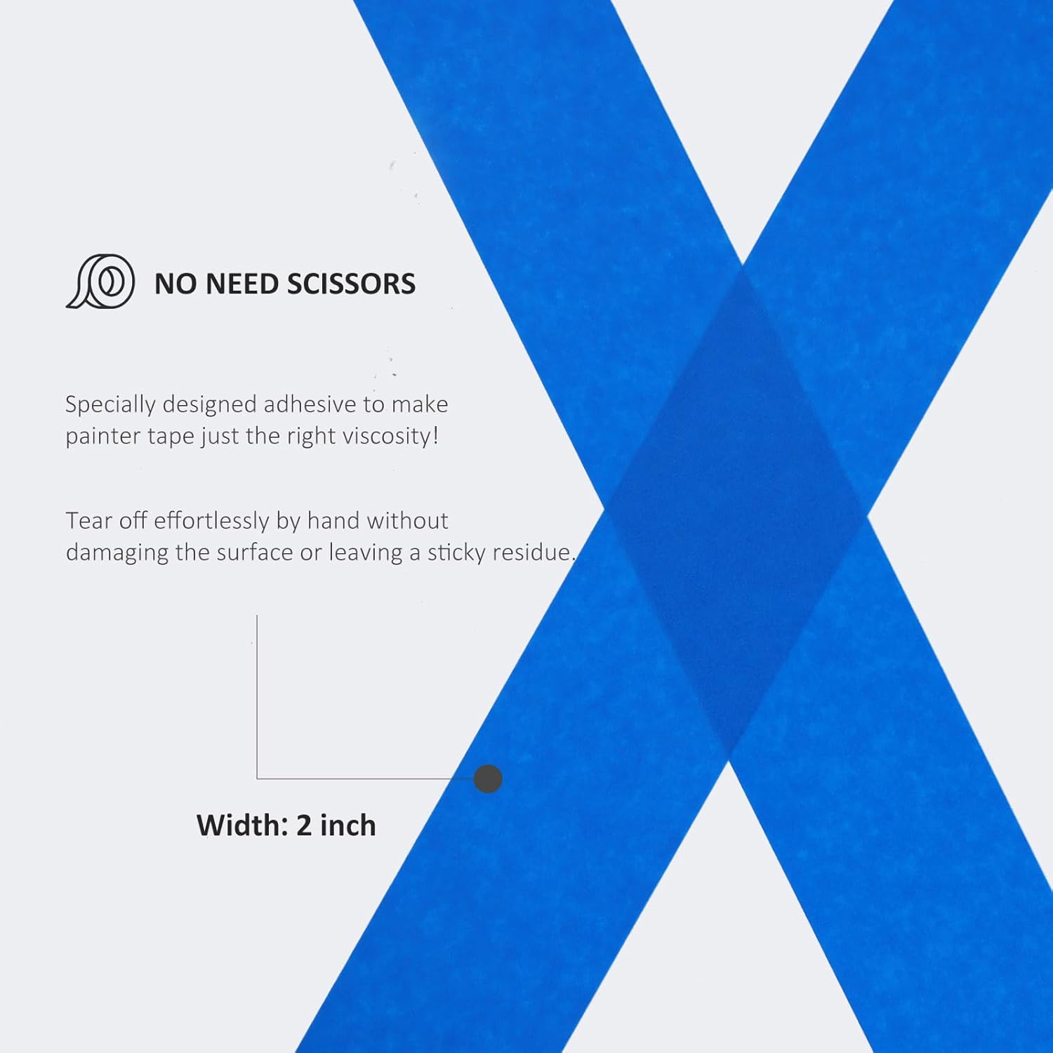 • Professional Grade Tape: Our blue 2-inch painter's tape will create a perfect edge for you. Sharp lines are kept nice and straight and fit perfectly to the surface or wall. It will not bleed through or deform. Even if you are a novice with no painting experience, you can also finish it perfectly. It is great for any kind of painting, edging, masking, and trimming jobs