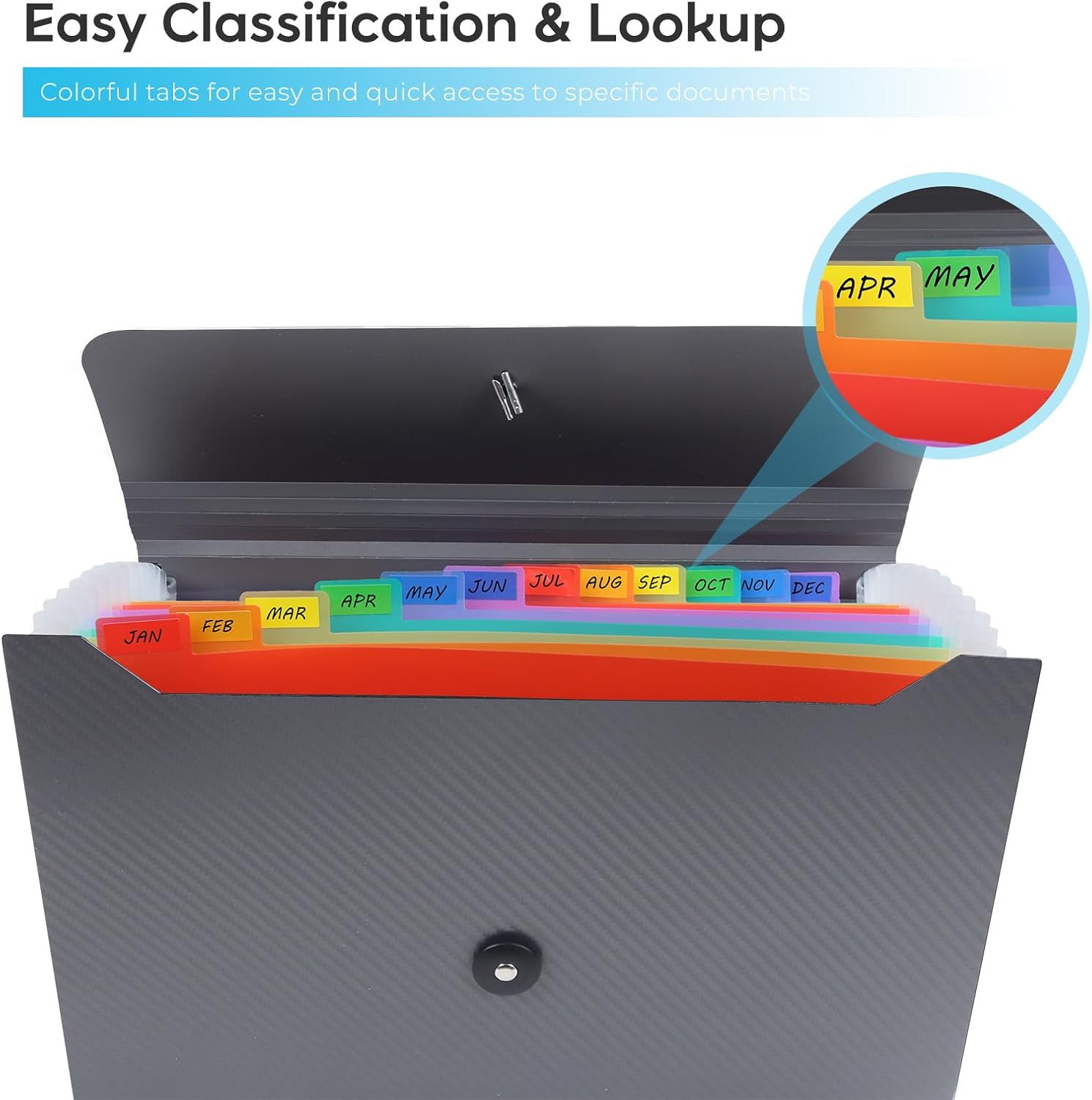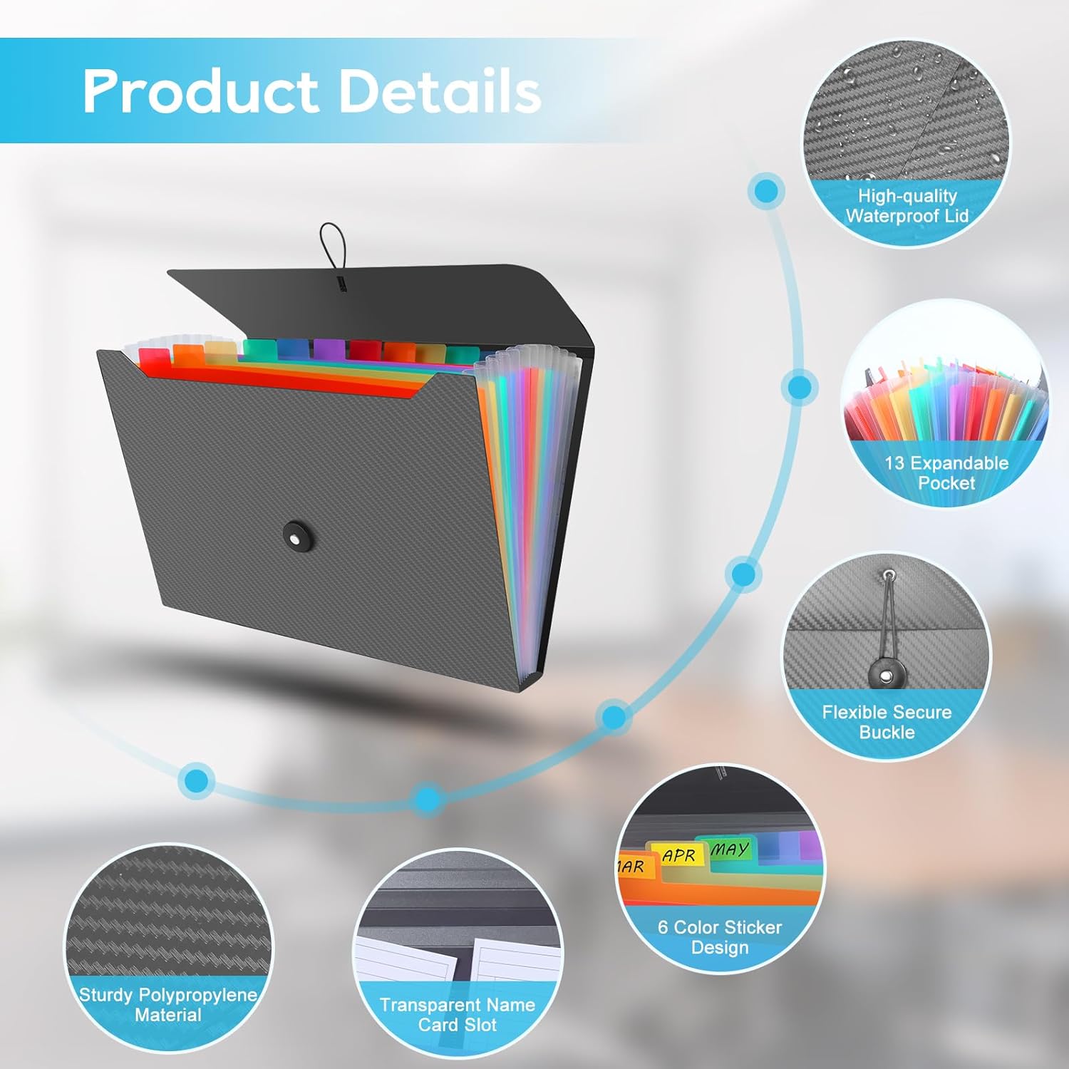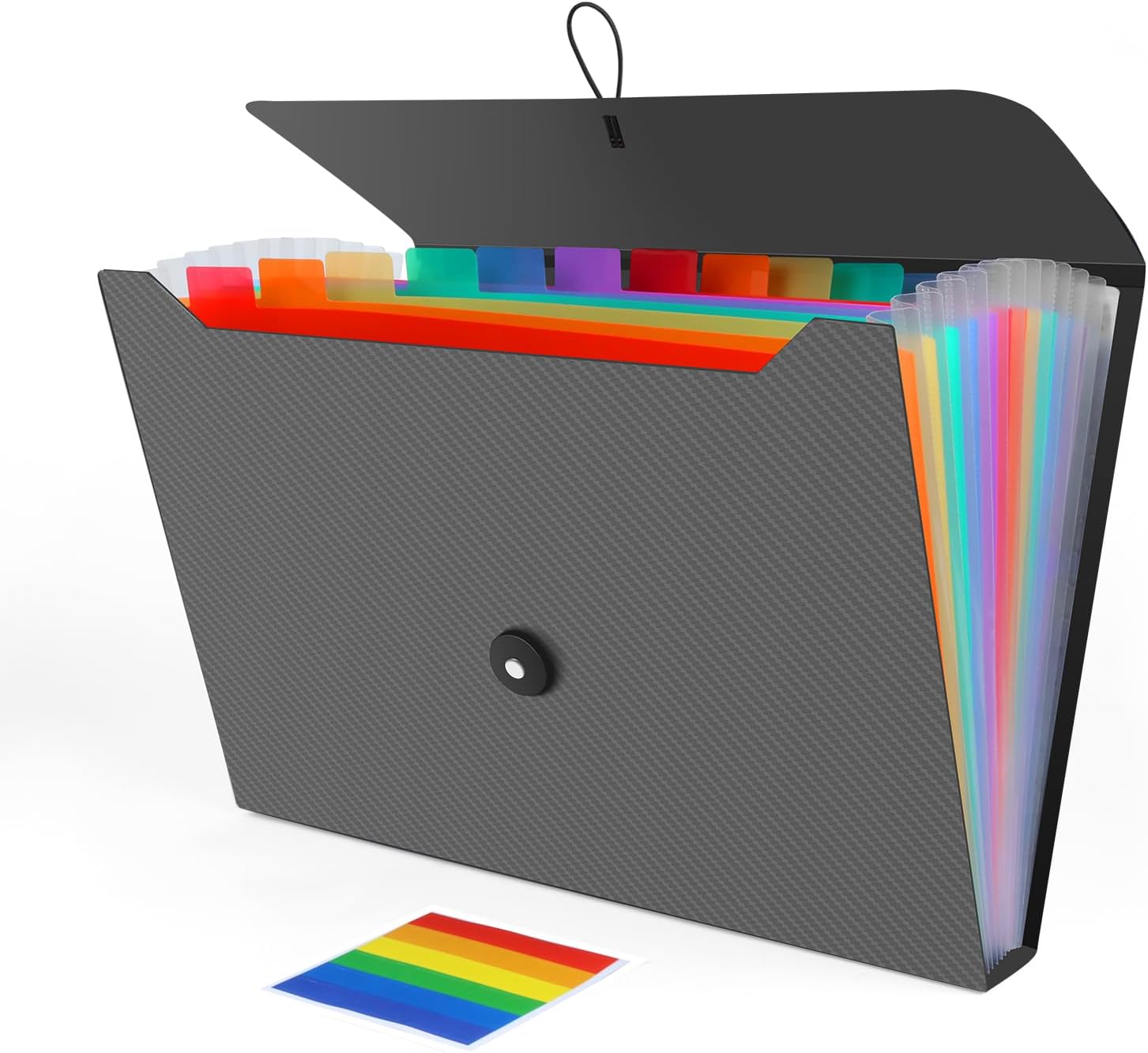 • 【COLORFUL DESIGN】Our expandable file folder features rainbow-colored inner pages and small colored labels for easy classification, making it both functional and visually appealing