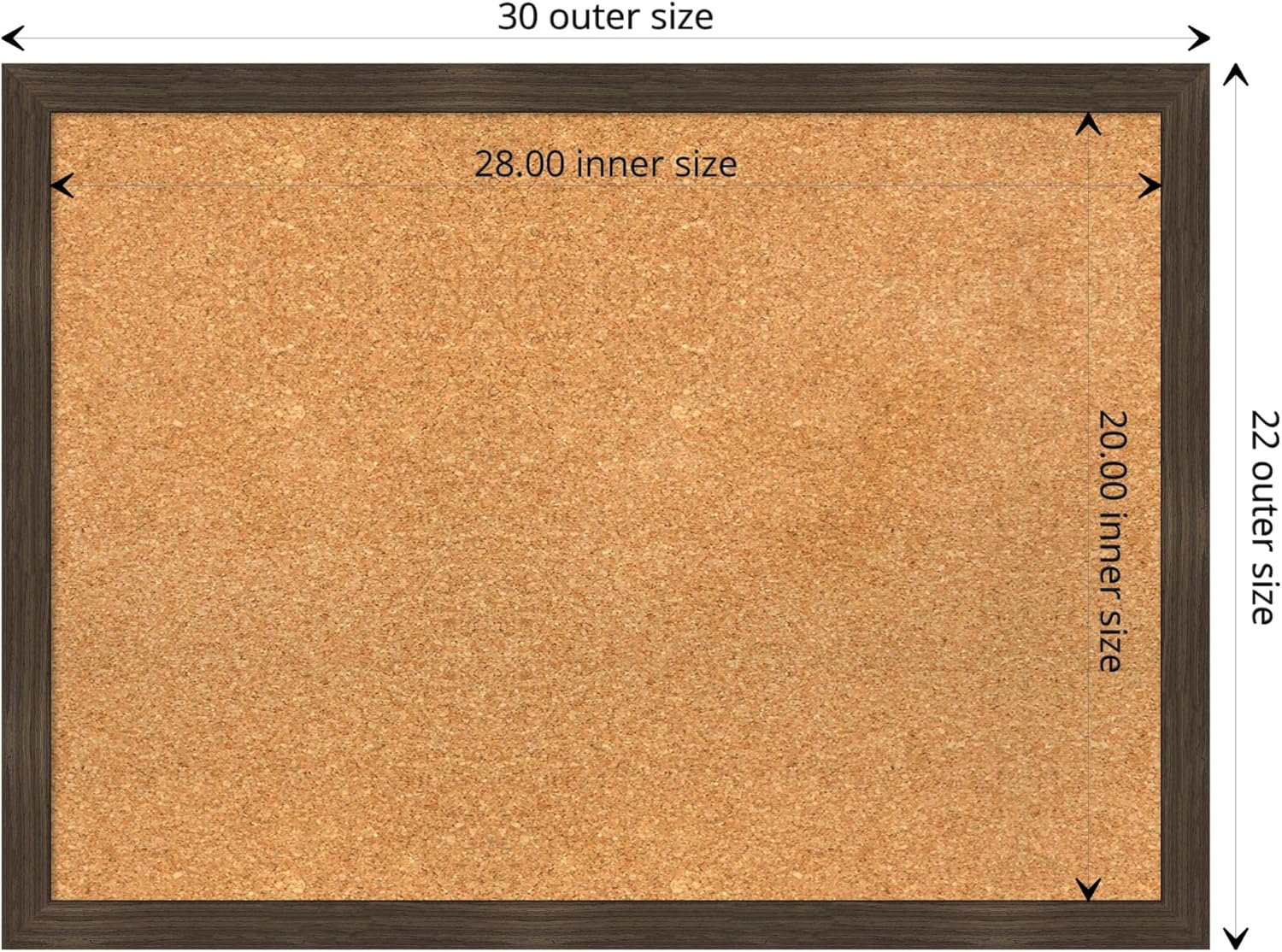 • DIMENSIONS: The overall size of this framed corkboard measures 30 in. x 22 in., including the frame. Its functional cork board area measures 28 in. x 20 in.