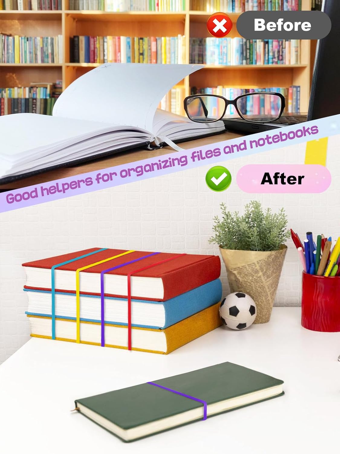 • Sufficient Quantity of Colored Rubber Bands: This product contains 120 pcs of multi-function large colored rubber bands, which are enough for you to use for a long time. Four different colors will be more convenient to categorize and organize. This product can be reused, reducing the use of rope and wrapping paper, avoiding excessive packaging, and helping your environmental protection actions.