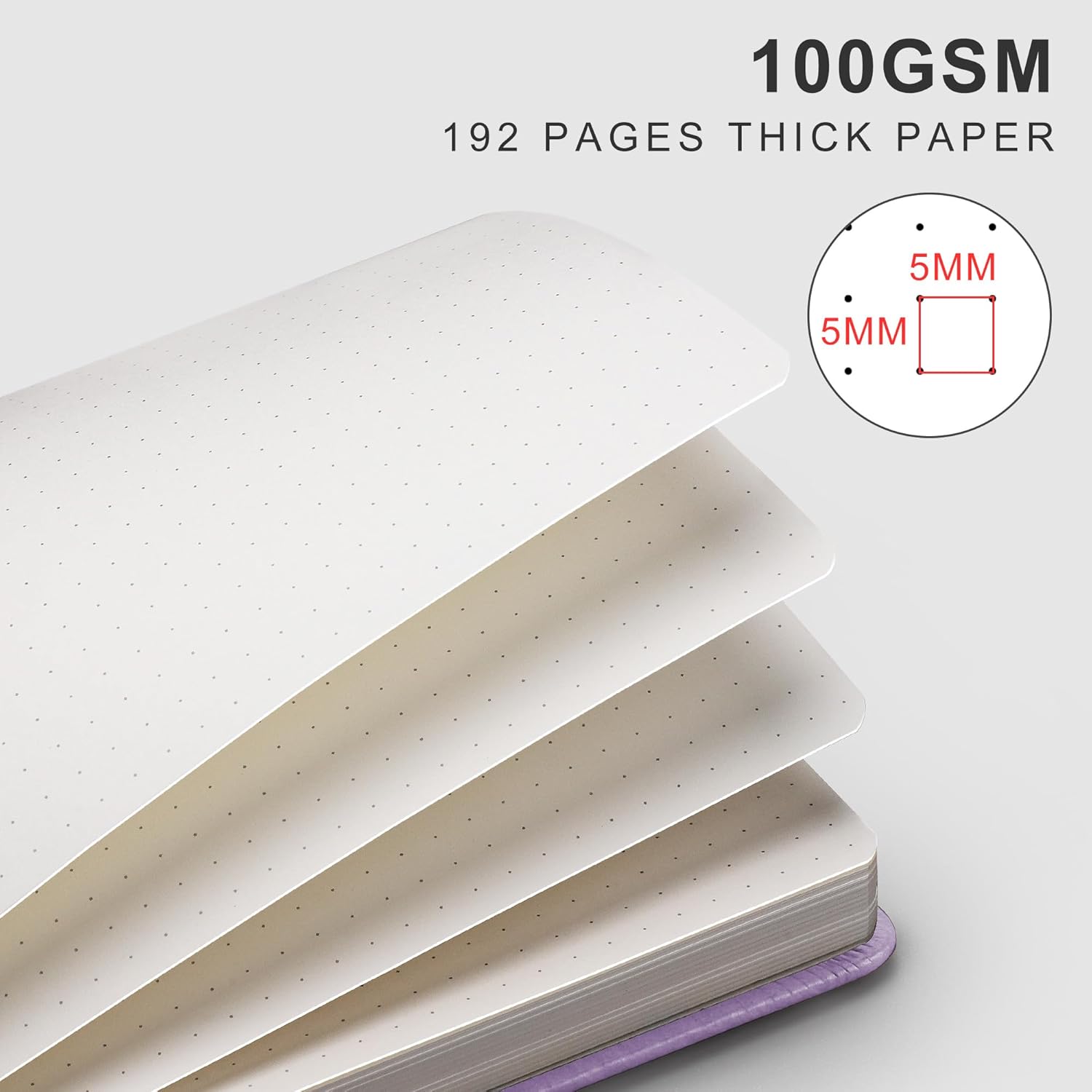 • Versatile 5x5mm Dot Grid Design: A4 dotted notebook, 192 pages. Ideal for bullet journaling, sketching, or notes with bleed-resistant, 100gsm ghost-free pages and dual-side neatness