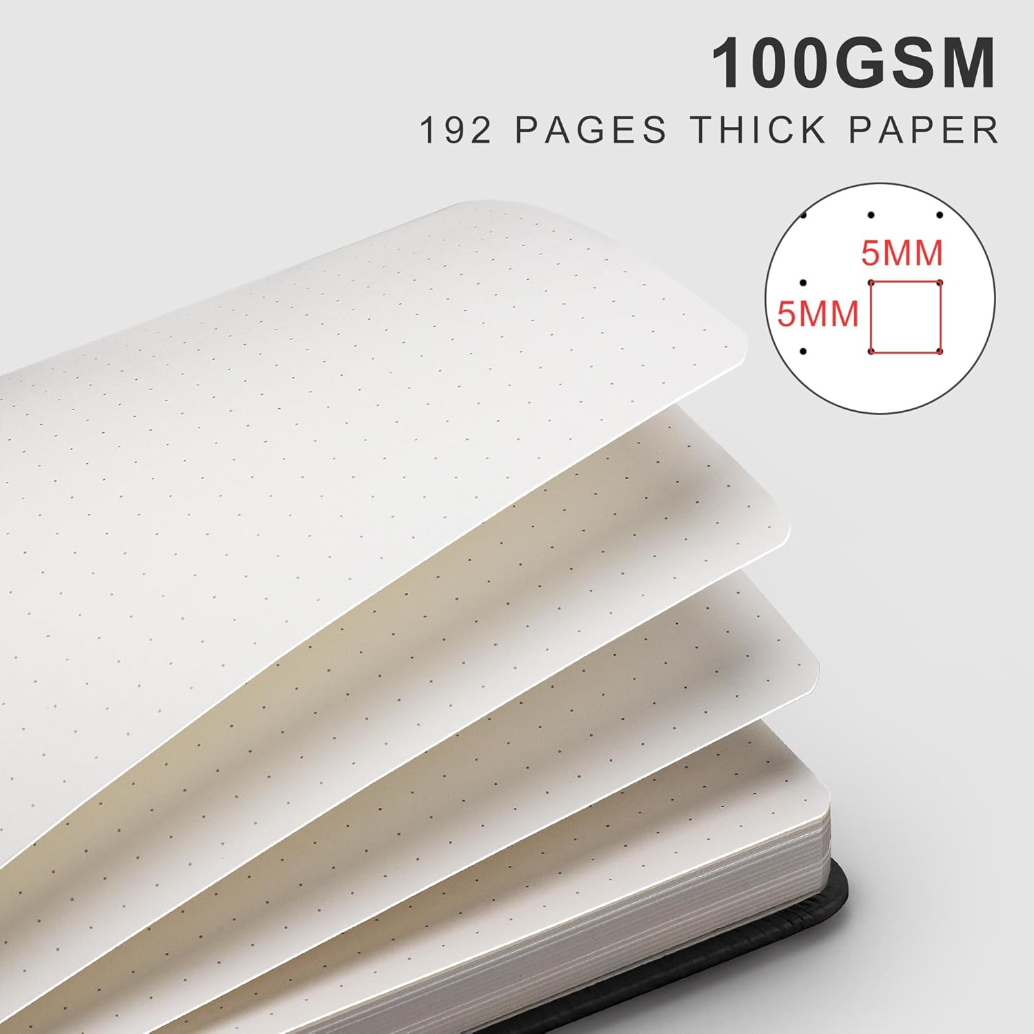 • Versatile Dotted Notebook: Suitable for bullet journaling, note-taking, and sketching this A4 size notebook features 192 pages of 100gsm acid-free paper with 5 mm x 5 mm dot grid spacing to provide neatness on both sides