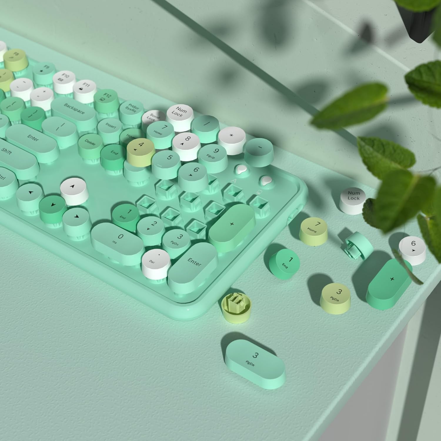 • Retro Round Keyboard:The wireless keyboard features retro typewriter-style round key-caps, 104 keys full-size with numpad, and 12 multimedia hotkeys combined with the FN key to optimize your work and study efficiency