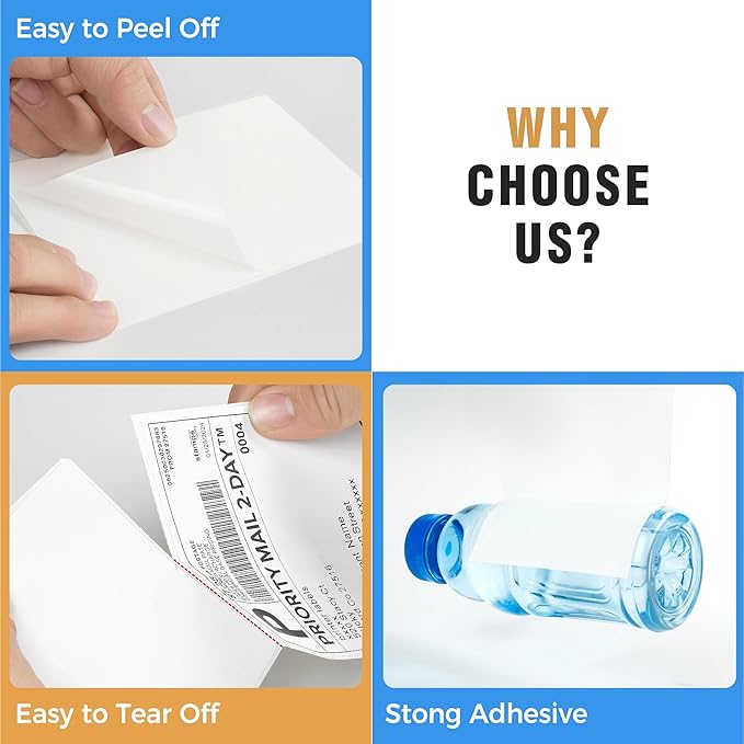 • STRONG ADHESIVE: The 4x6 labels shipping labels offer a strong bond to envelopes, boxes, cards, and glass, ensuring labels stay securely in place. Made from ultra-white paper, they provide crisp, dark prints for easy reading and reliable scanning