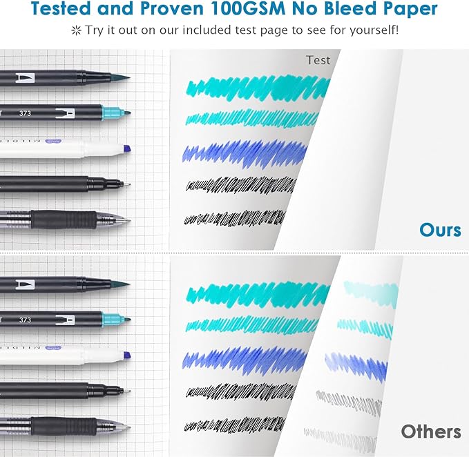 • 【Thick Paper for Writing Without Limits】Large A4 hardcover notebook (8.5'' × 11''/216mm x 283mm), total 320 pages, includes 312 numbered pages(equal to 156 sheets). 5 x 5mm graph grid paper(5 squares per inch). Our INNOVATIVE PAPER TECHNOLOGY on 100GSM thick paper ensures a perfect canvas for your ideas - no bleed, no ghosting, as confirmed by tests with various pens.