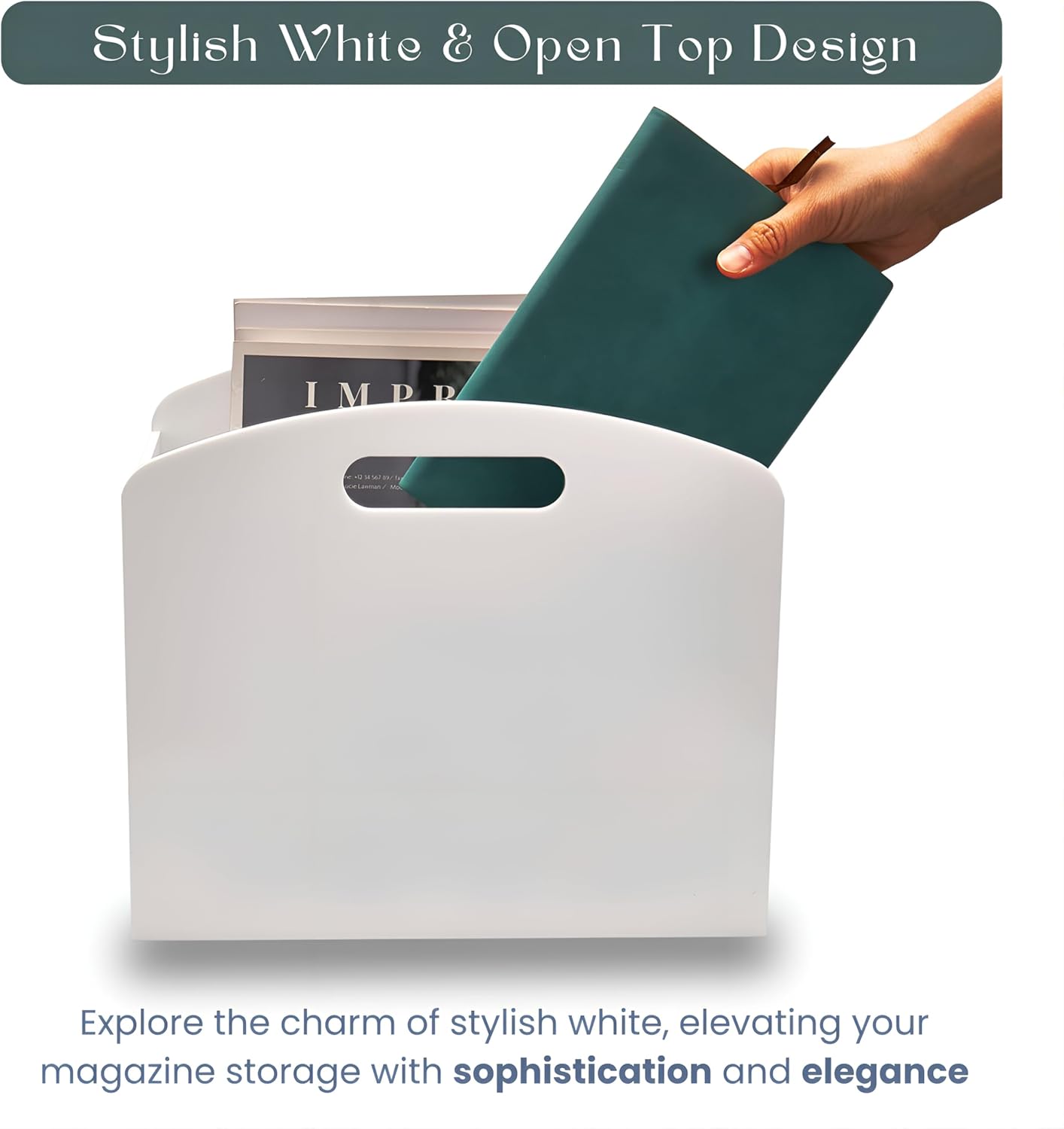 • STYLISH & MODERN - Explore the charm of stylish white, elevating your magazine storage with sophistication and elegance.This magazine holder open design also provides easy access to the items you have stored.