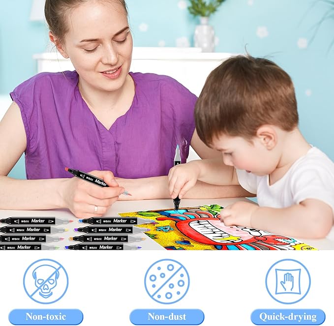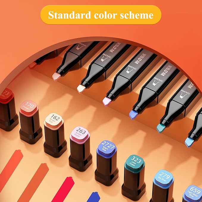 • Dual tip design: Each alcohol marker has a double-ended design, with a fine point and broad point.The art markers feature both a chisel tip for detailed lines and a fine tip for precise detailing and colorings.