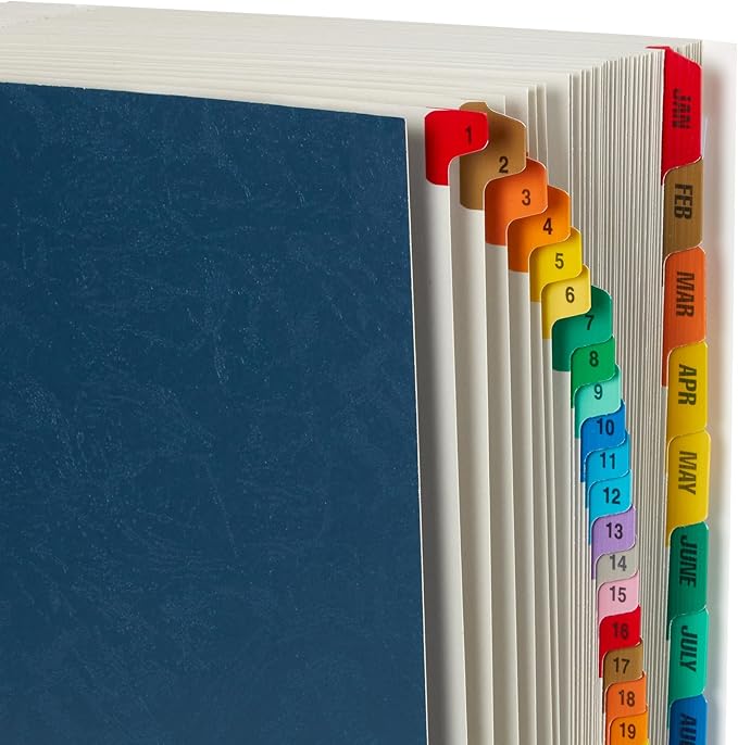 • 12 dividers indexed monthly and 31 dividers indexed daily for clear organization