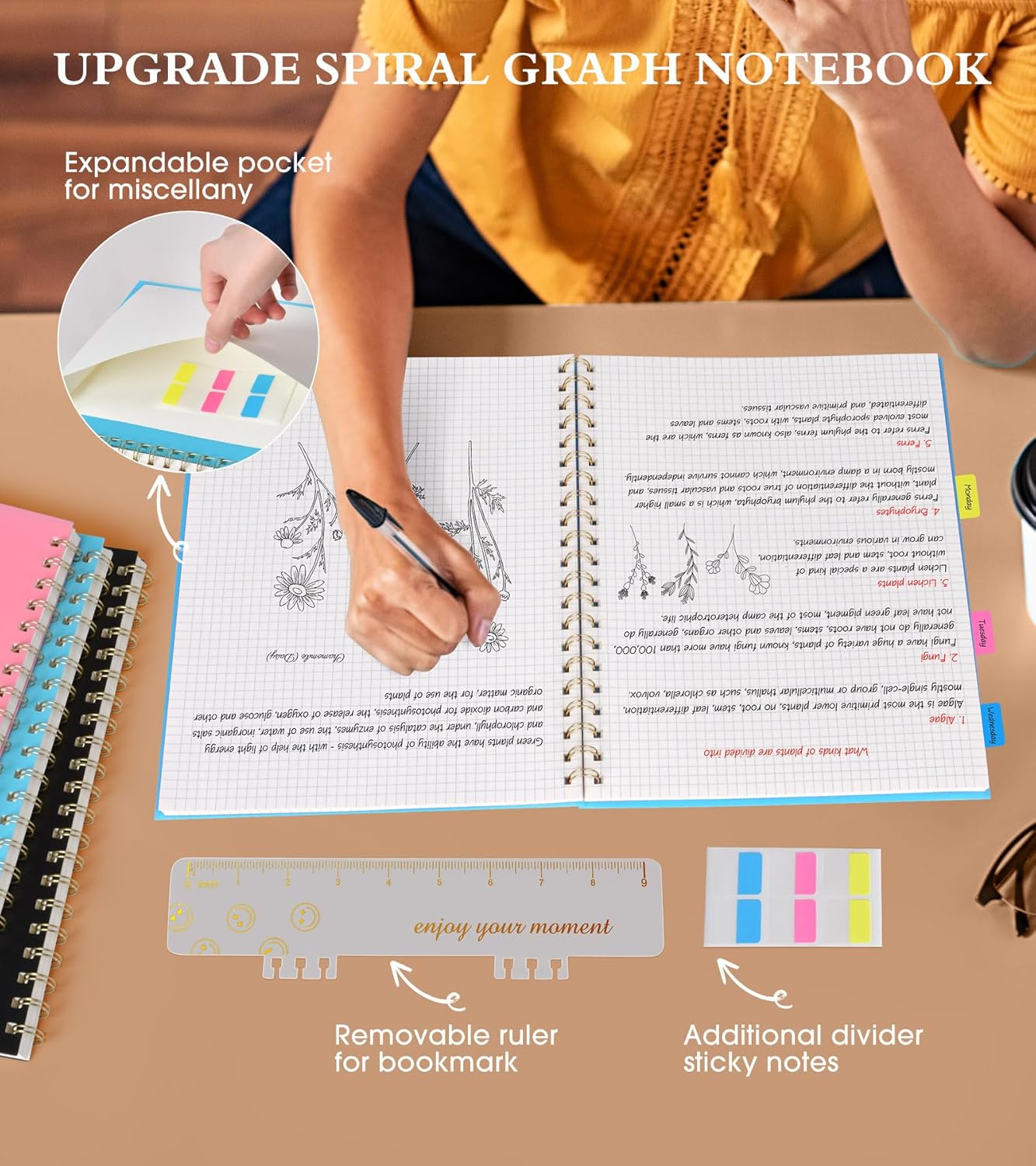 • 【A4 Graph Spiral Journal Notebook】 Large a4 size 8.5"x11" grid notebook, standard 5mm x 5mm graph paper for better writing and drawing experience. The professional sturdy water-resistant plastic hard cover will protect your graphing notebooks to last for years, which has oil-resistant and anti-bending properties, effectively protecting the internal paper of the journal and provides a comfortable writing surface.
