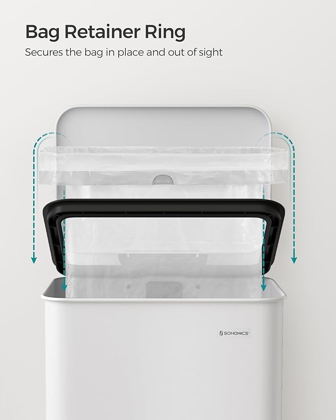 • [15 Garbage Bags Included] To get you started, we've included 15 custom-fit SONGMICS trash bags (code 050A), designed to perfectly fit this step trash can