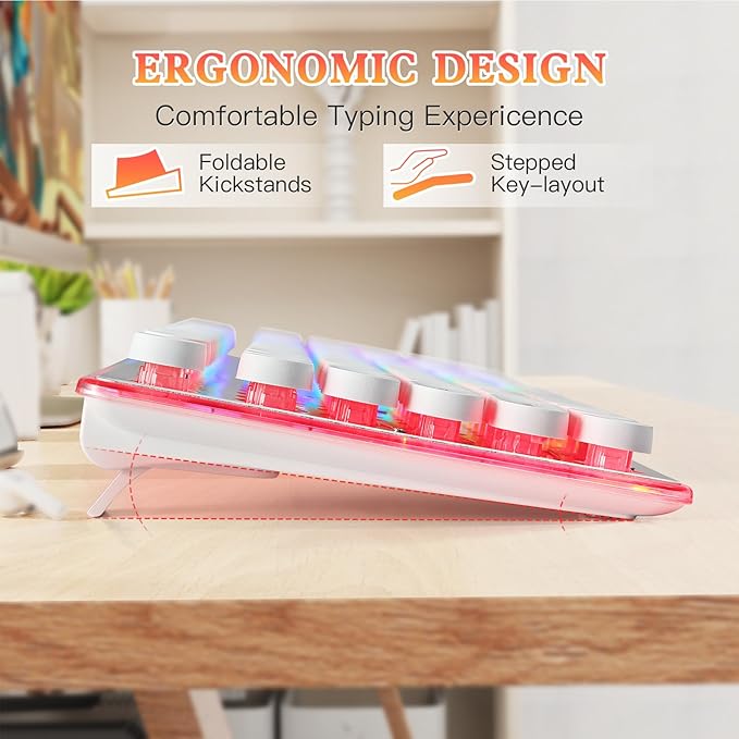• ❤ Vintage Style ❤ Unique round keycaps with a floating-key design in profile bring you a nostalgic feeling with the eye-catching retro aesthetic