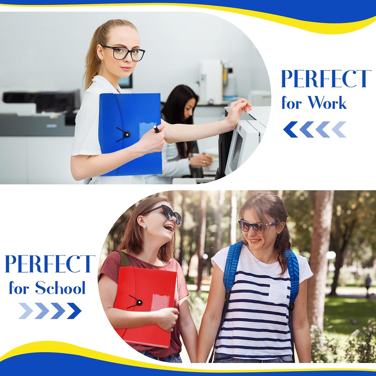 • Secure Transportation: with an elastic buckle design, these plastic file folders incorporate a flap and bungee cord closure; This feature ensures that your files remain securely in place during transportation, preventing any accidental loss; You can confidently carry your documents without worrying about their safety