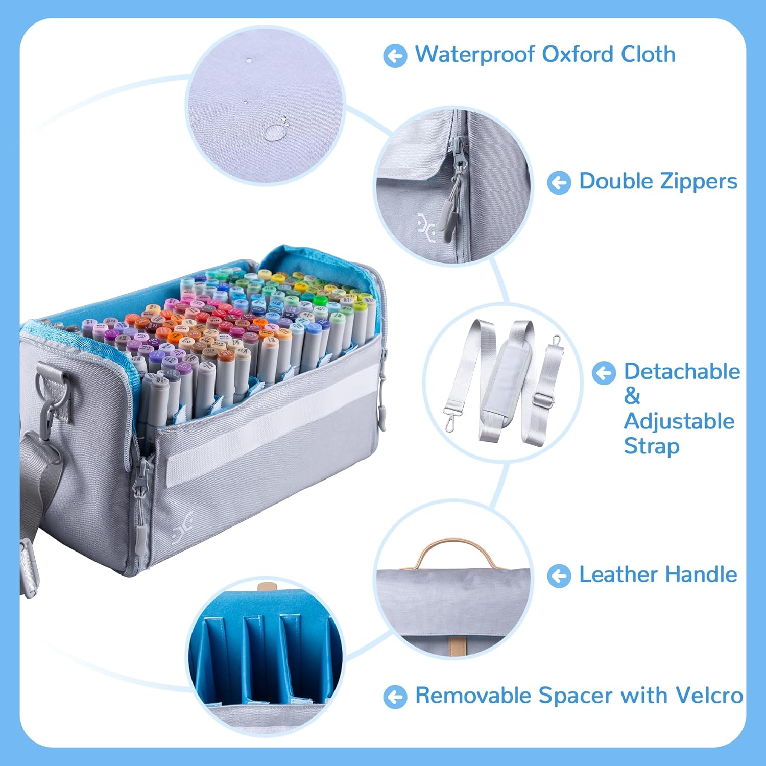 Marker Pens Storage Tote Handbag, Up to 160 Pens, Crossbody Bags Causal Shoulder Bag for Artists,Hobbyist