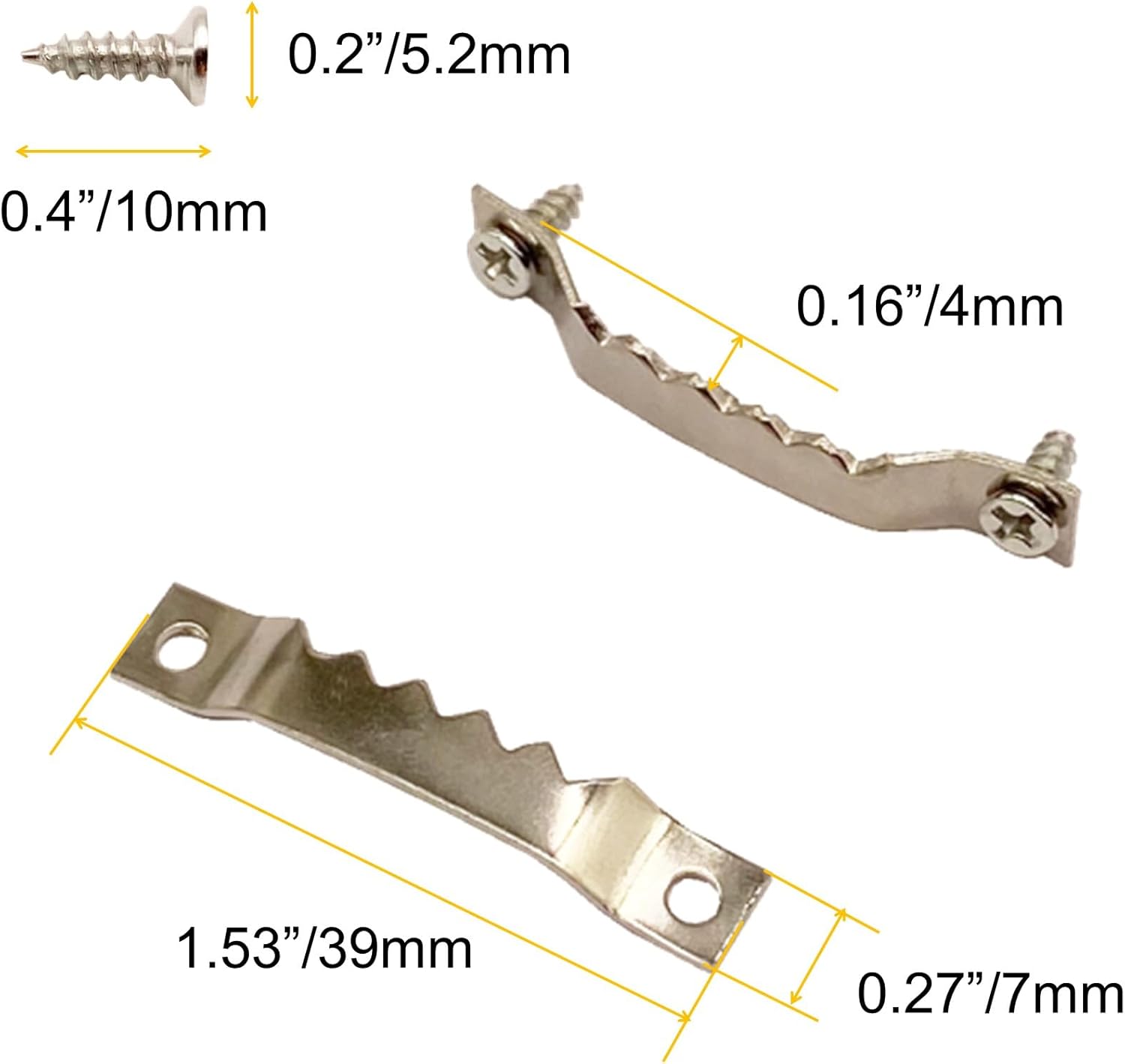 • Easy to used: Sawtooth Picture Hangers are secured with screws, easy to install and perfect for hanging wooden frame. Just nail the hanger to the back of the frames and hang to the wall hooks.