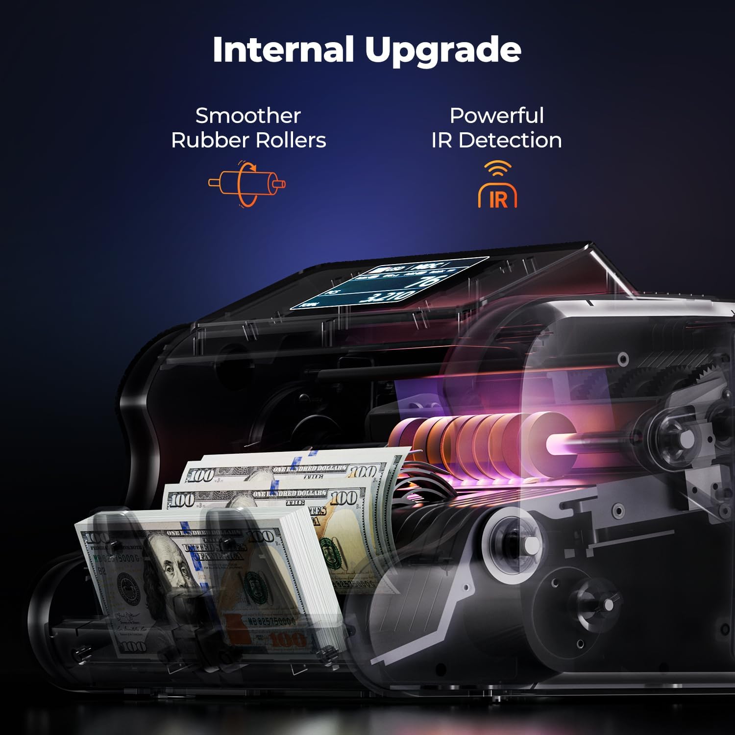 • [Bank-Grade Counterfeit Detection] With 2 special Infrared Detection tubes, our money counting machine uses UV/IR/MG/MT detecting technology to examine the bills. Using Magnetic, Infrared, Ultraviolet, Dimensional, Thickness, Security Line, Variable Ink, Spectrum, and Fluorescence Detection techniques to completely protect your company from false bills