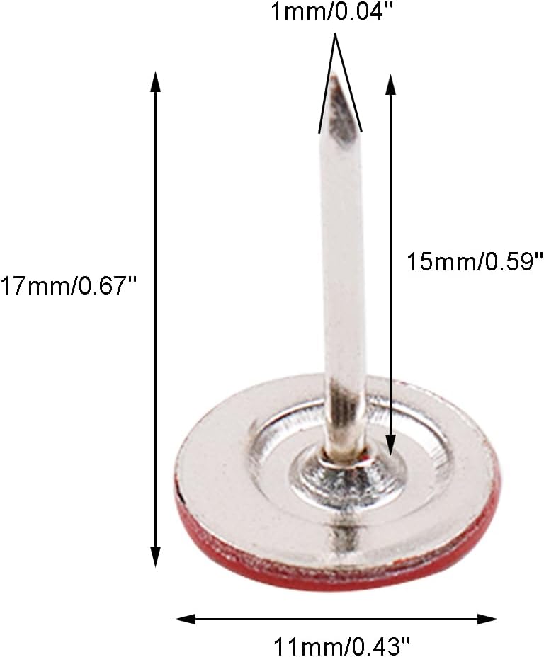 • PACKAGE CONTENT: 100Pcs red flat head upholstery tacks, enough quantity to meet your daily needs. Total Size:11mm*17mm/ 0.43" * 0.67"(Dia.xH), elegant for furniture decoration