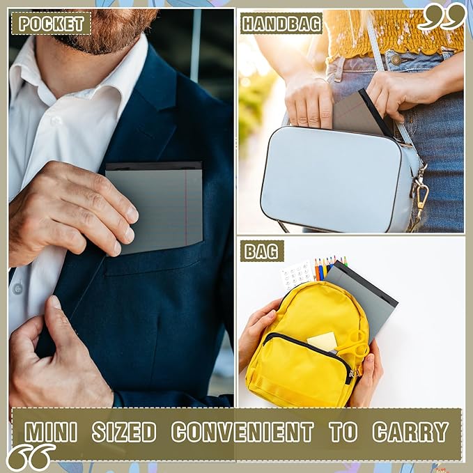 • Sufficient Quantity: grab incredible value with our comprehensive note pad pack featuring 24 small legal pads, each with 30 sheets; Measuring about 4 x 6 inches/ 10.16 x 15.24 cm, they're compact, ideal for on the go note taking or use in small workspaces; These note pads are designed to efficiently cater to your daily work and study requirements