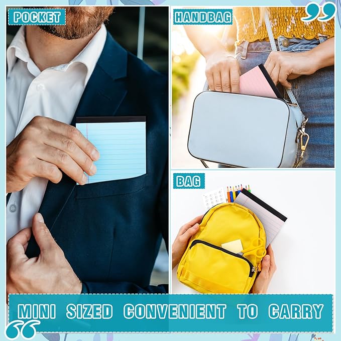 • Sufficient Quantity: grab incredible value with our comprehensive note pad pack featuring 24 small legal pads, each with 30 sheets; Measuring about 4 x 6 inches/ 10.16 x 15.24 cm, they're compact, ideal for on the go note taking or use in small workspaces; These note pads are designed to efficiently cater to your daily work and study requirements