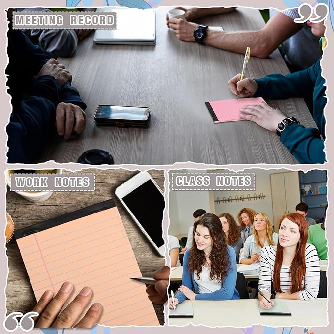 • Classic Line Design: we've designed these colored legal pads with a legal pad college ruled layout and standard about 9/32 inch spacing; The designated margins on the left side serve as visual guidance when writing; It's ideal for note taking, drafting letters, jotting ideas, and compiling to do lists, enhancing productivity