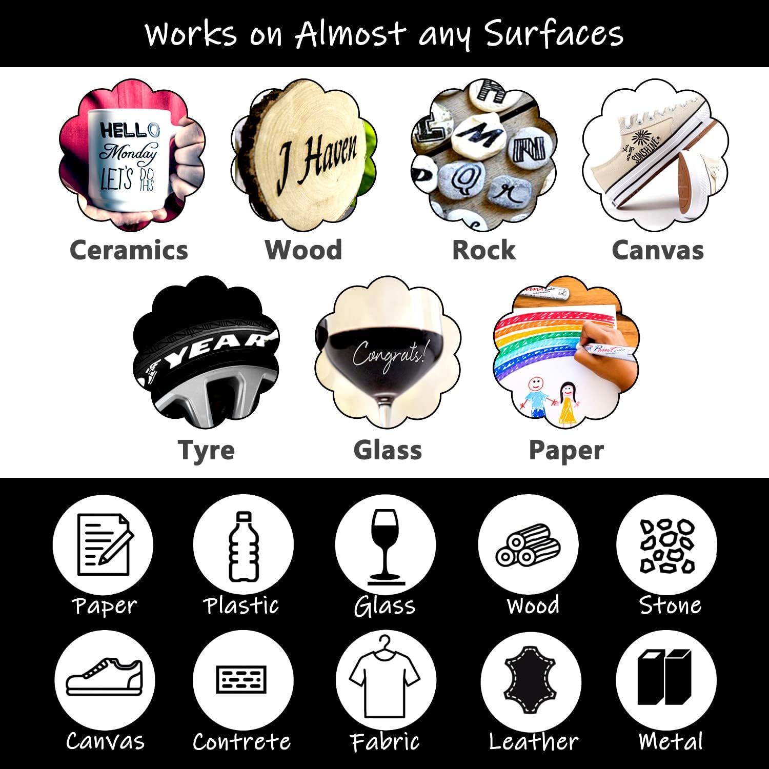 • Premium Paint Marker: These markers are made of opaque ink that is chemically stable, lightfast, quick-dry. Oil-based ink is odorless, non-toxic, xylene-free, acid-free, and environmentally-friendly. Designed for kids, adults, students, artists, and professional designers alike