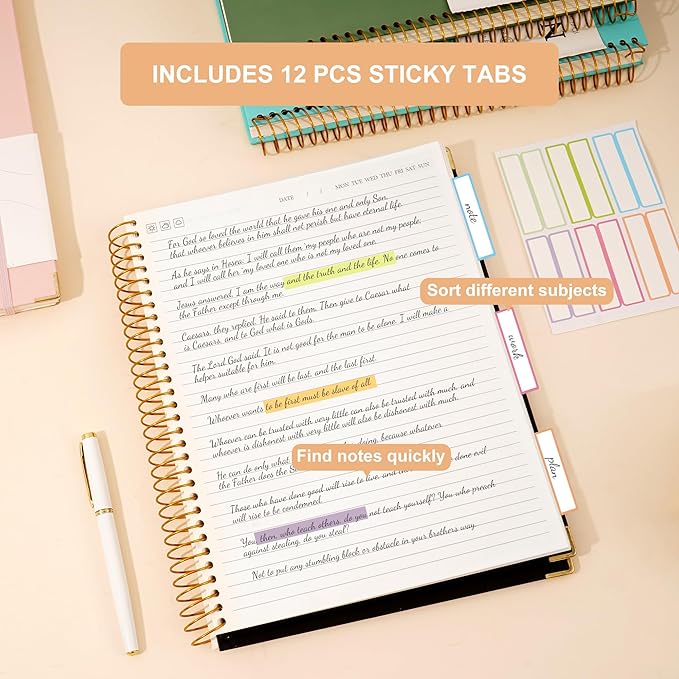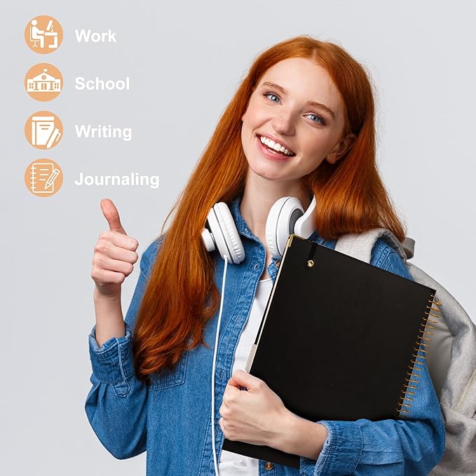 • Strong Spiral Binding& Lay Flat: The hardcover spiral notebook is very sturdy with a pretty golden spiral. Well positioned spiral binding so pages open flat with ease, ensuring that the pages turn smoothly and are organized. Match the gold corner protectors to be attractive as well as practical. Lasting all year around, fantastic work or school supplies!