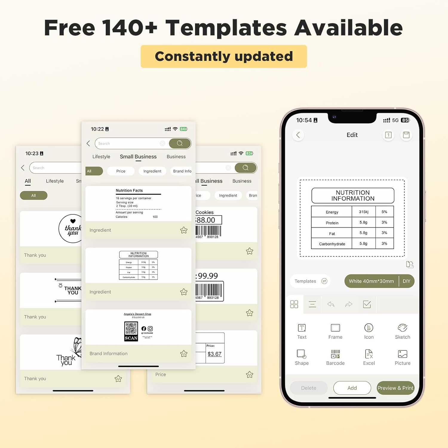 • Versatile App Editing Function: Easily add images from your phone, tablet or PC; customize your labels with 40 fonts, 30 frames, and 450+ icons; all free to use
