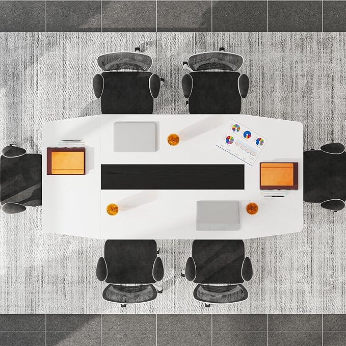 • 【Multi-purpose】Elevate the style and functionality of your office or dining room with this 6ft conference table. Its modern boat-shaped design adds a touch of sophistication to any room, while its versatile construction allows it to seamlessly transition from a conference table to a chic dining table. Whether you're hosting a team meeting or enjoying a family dinner, this table is the perfect choice for those who demand style and flexibility in their furnishings.