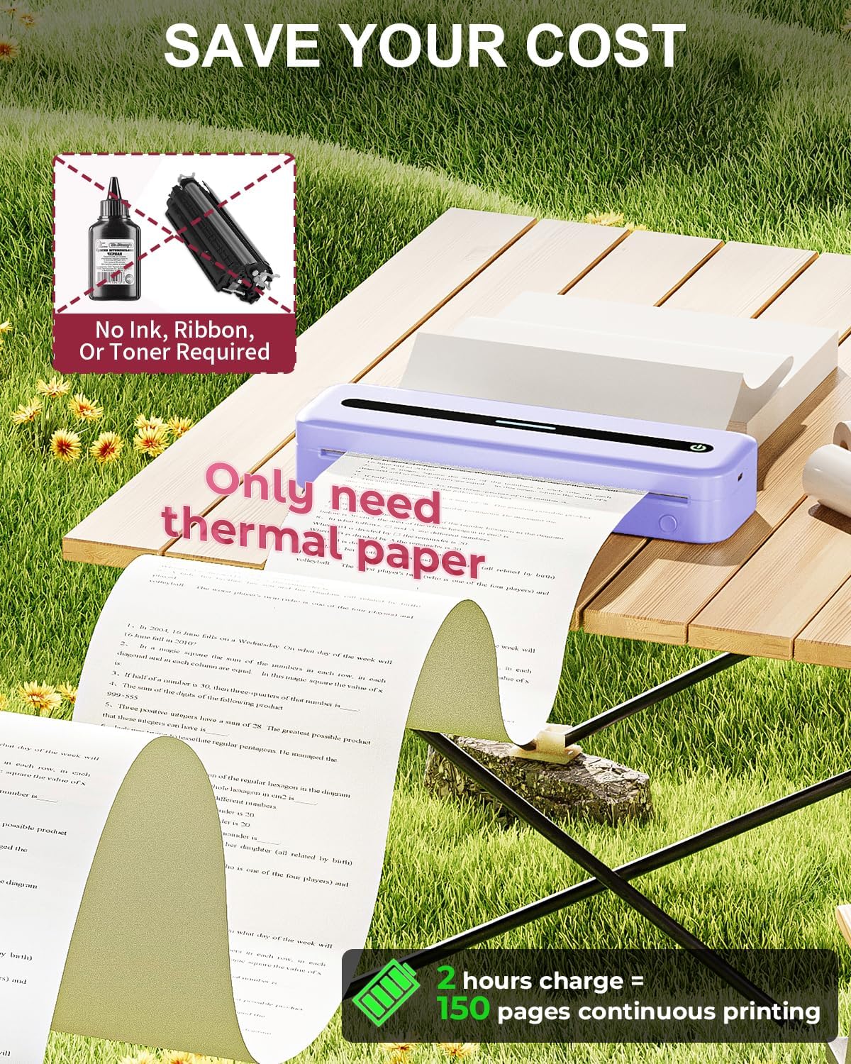 • SAVE CASH & TIME: COLORWING inkless printer! No ink, ribbon, toner - $0 cost wonder! Just grab thermal paper. Cleaner, handier, no health risks! Small slim printer, big capacity. 2-hour charge = 150 sheets non-stop!