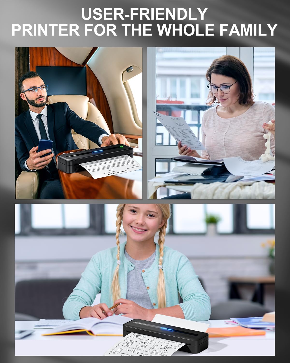 COLORWING Portable Printers Wireless for Travel, 300DPI Mini Compact Inkless Printer, Thermal Bluetooth Printer Compatible with Android and iOS Smartphone & Tablet & Laptop - Black