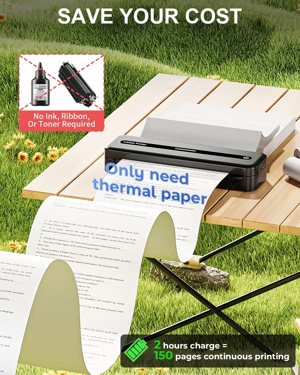 • SAVE YOUR COST AND TIME: COLORWING no ink printer don’t need ink, ribbon or toner $0 costing, only $0.14 thermal paper. More cleaner and more convenient, and does not jeopardize your human health. Small printer with large capacity, charging for 2 hours can print 300 sheets continuously.