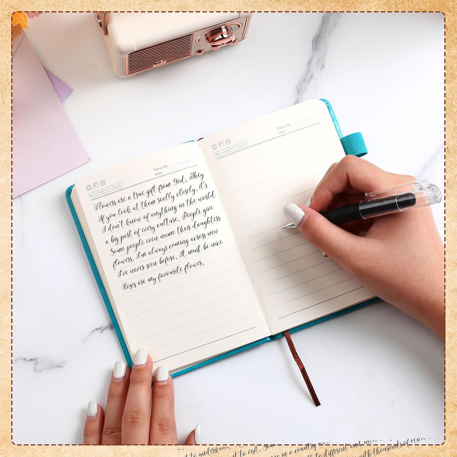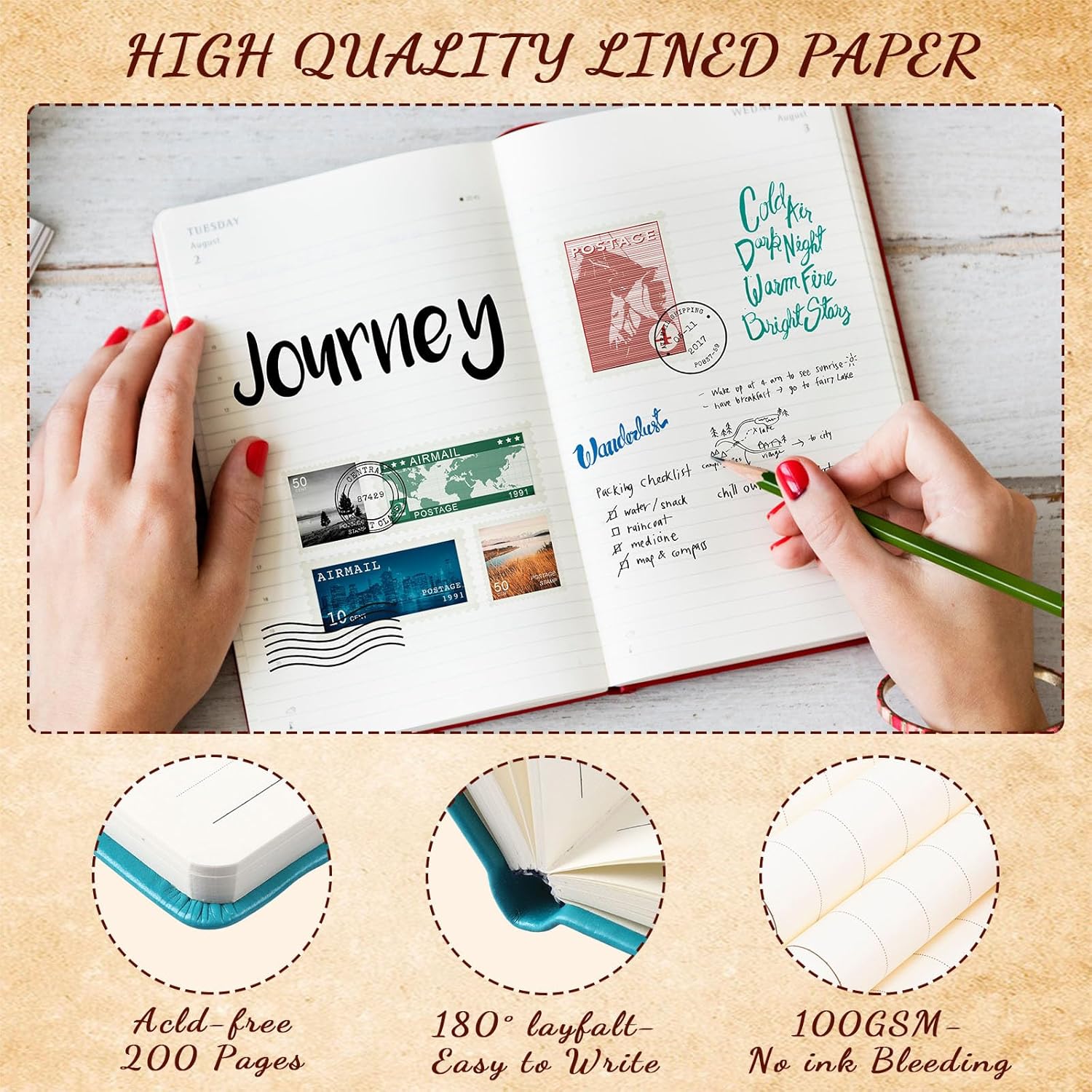 • 180 Degrees Lay Flat: our small notebook can be laid flat at 180 degrees after opening, convenient for both left and right hand writing, improving efficiency, which is also convenient for you to read; When you're done, you can close it tightly with an elastic band, so the paper can stay flat and will not curl