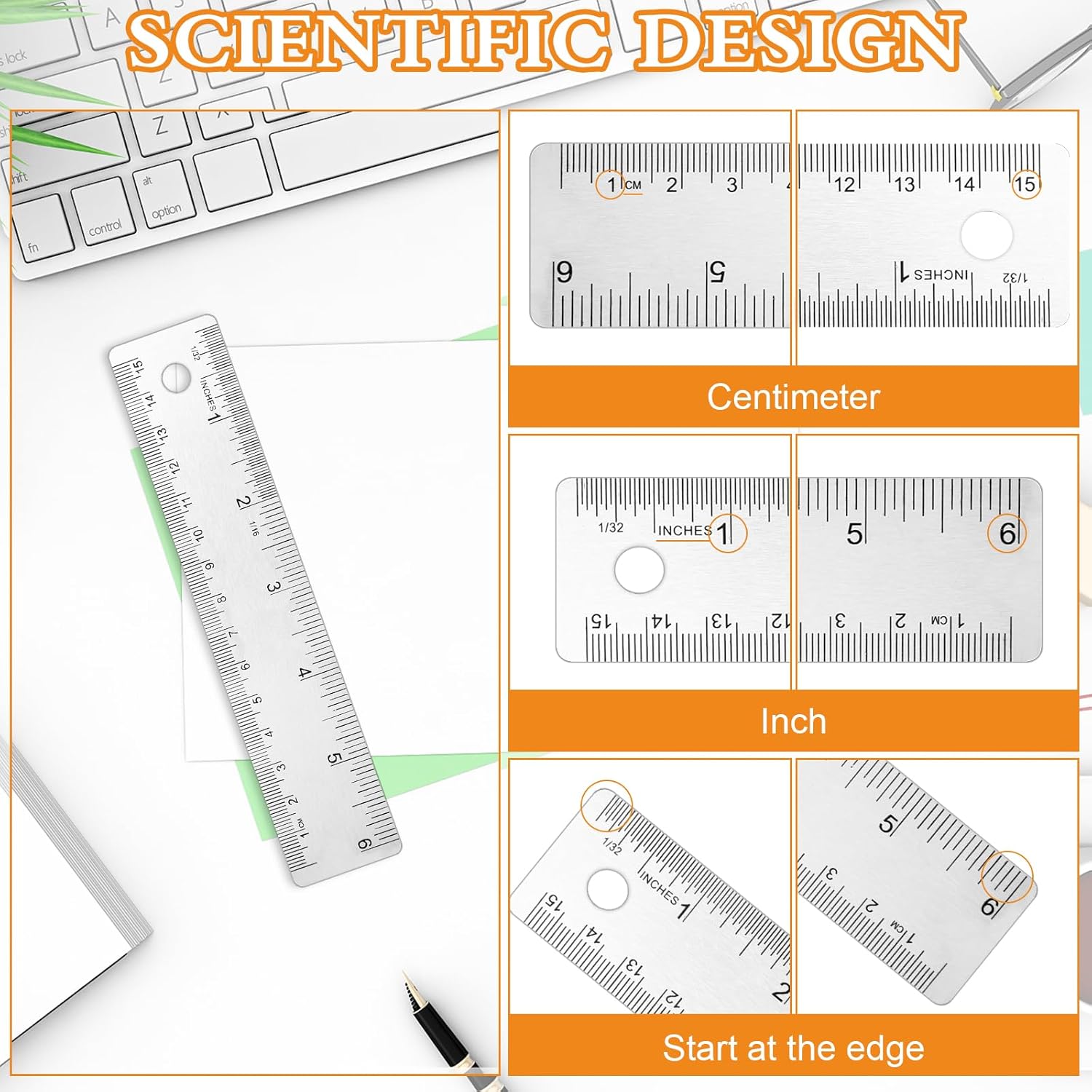 • Non-slip and Easy to Store: our ruler 6 inch is designed with cork backing and has anti-slip function, which can effectively prevent ink from smearing your work. The ruler has a hanging hole on the end for easy storage