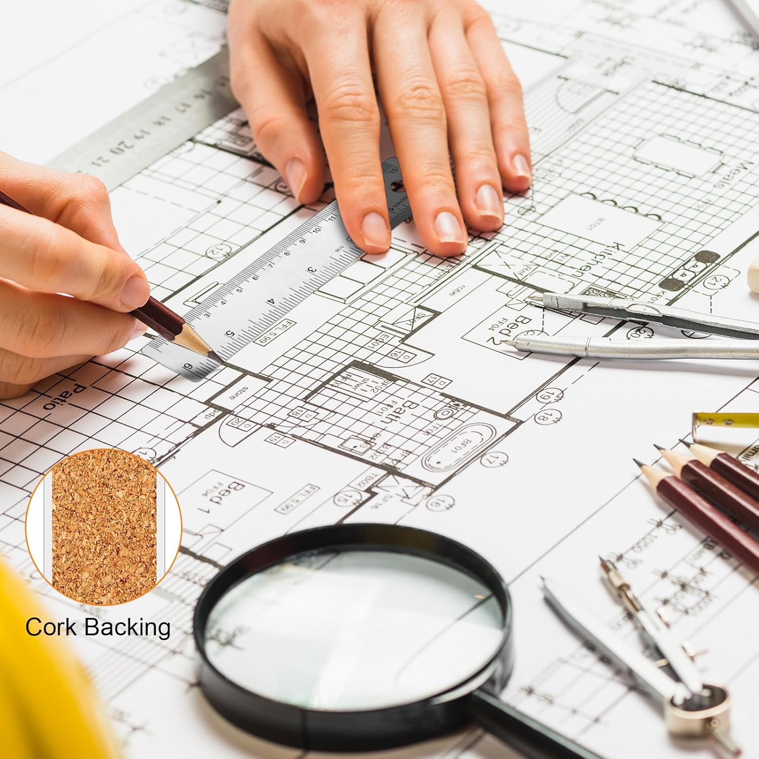 • Widely Used: the metal ruler with cork backing is essential tools for accurate measurements and can be used in classrooms, schools, offices and homes, perfect for students, teachers, designers, architects, engineers and more