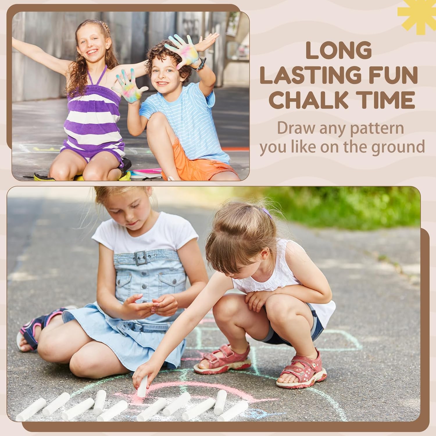 Fulmoon 40 Pcs Jumbo Sidewalk Chalk for Kids Outdoor Art Non Toxic Large Washable Street Chalk for Adults Drawing Painting Classroom(White,Round Style)