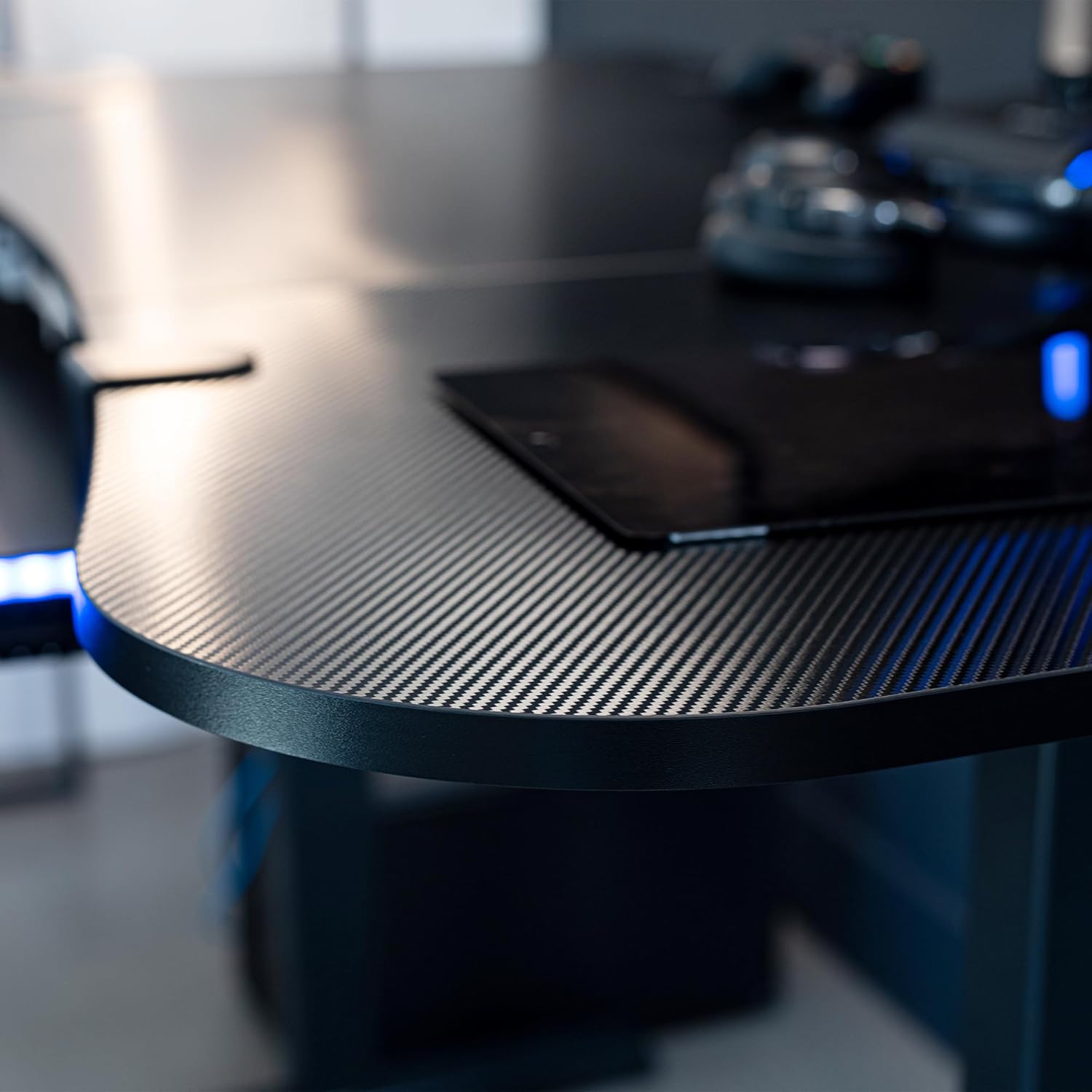 • Carbon Fiber 3-Piece 63" Top: The large table top measuring 63.1” x 31.5” (28” at center) offers plenty of room for a variety of monitor and laptop setups along with work projects and office supplies. Note: All 3 sections of the table top must be used