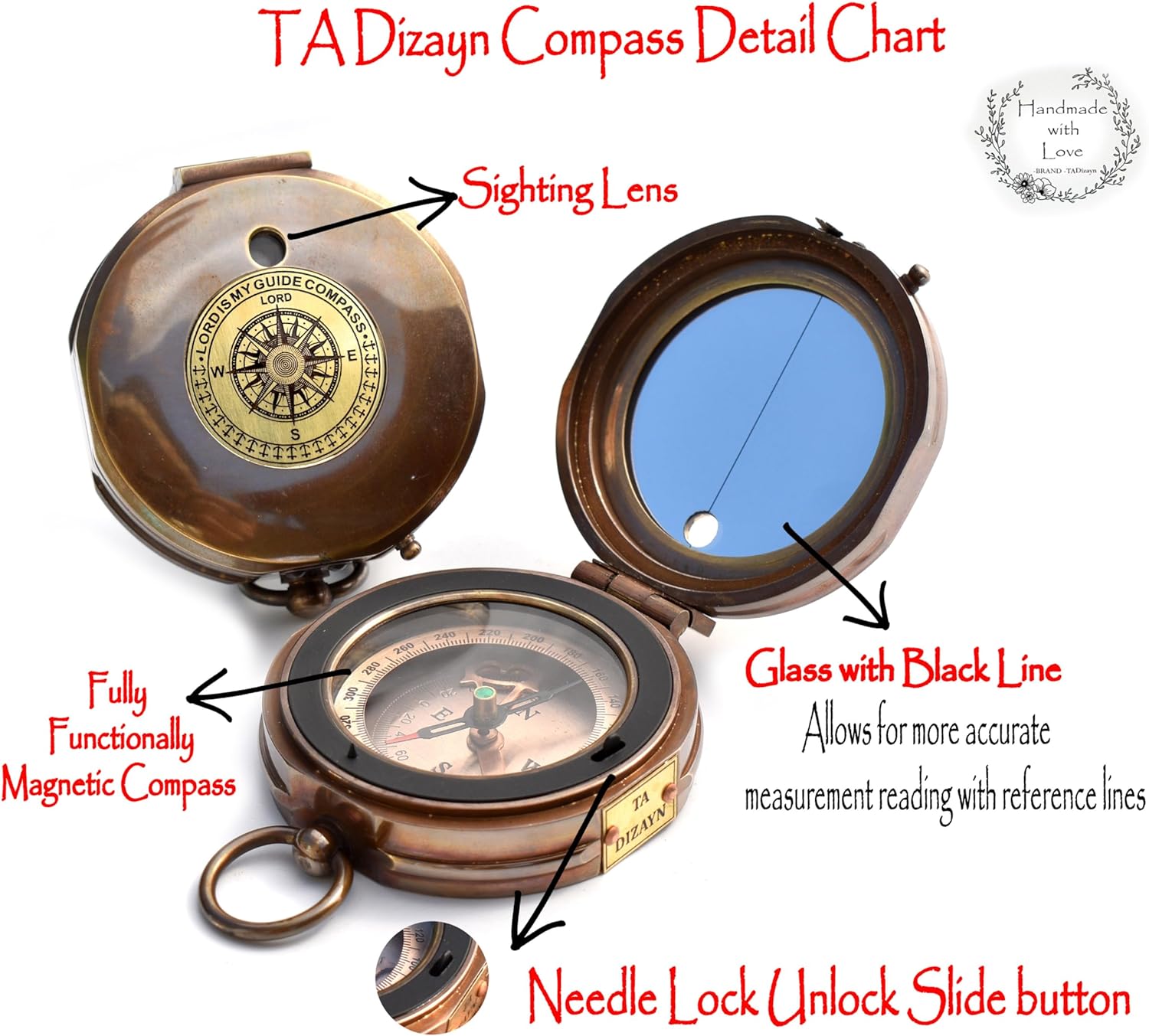 • Solid Brass Compass Antiquated Brass Finish With Trust in The Lord with All Your Heart -Proverbs 3: 5-6 Quote Engraved Compass with Wooden Box