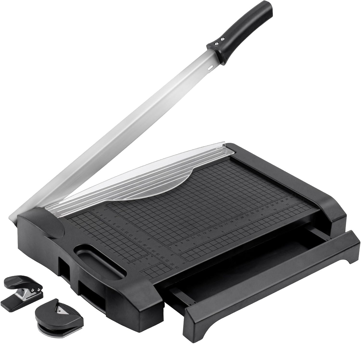 • Cutting Accessories Bonus : The package comes with corner rounder and paper hole puncher which help to perfect the paper work; The base was designed a special slot for storing them that will better prevent missing tools