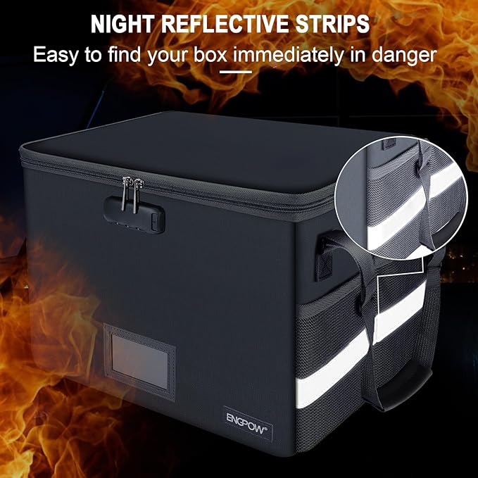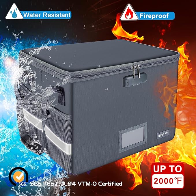 • Fireproof and water-resistant: Fireproof lock box is made of double layered non-itchy silicone coated fiberglass which stands up the temperature up to 2000℉.It has been passed by SGS TEST(UL94 VTM-0 Certified).Fireproof file box is not only fireproof but also high water resistant in case it gets wet for any reason.Nothing is completely foolproof, but added protection is always a good idea.