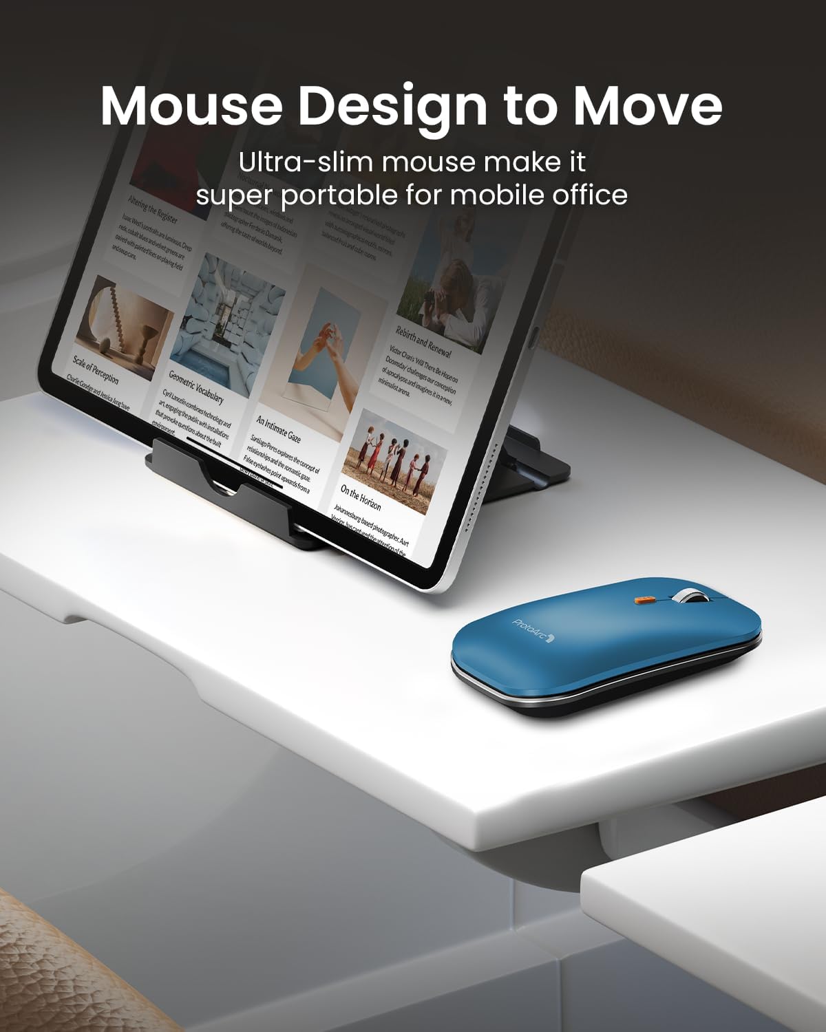 • Precision Ultra-Slim Mouse: Designed for professionals on the move, this portable mouse delivers pro-grade precision with 3 adjustable DPI modes (1000/1600/2400) – adapt to any task instantly. Its slim profile takes up minimal space, slipping into laptop sleeves or pockets, while 25dB micro-switches prevent "click fatigue" in shared workspaces