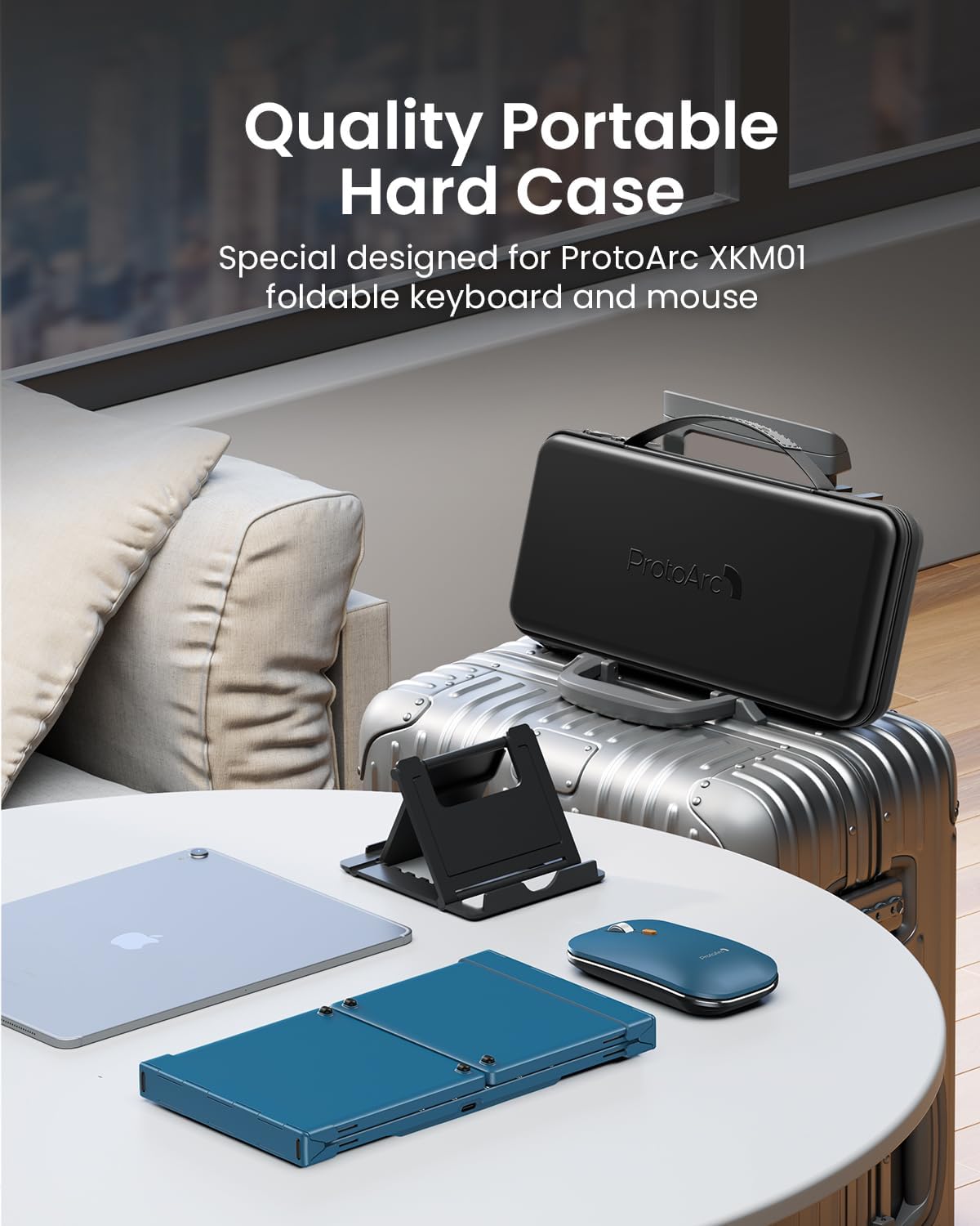 • Travel-Ready All-in-One Kit: Includes a carrying hard case (12 x 5.55 x 1.6 in) with a foldable stand for 4-11” iPads/tablets. Internal aluminum hinges survive 10,000+ folds, tougher for frequent trips. Unfold and work instantly, zero setup time