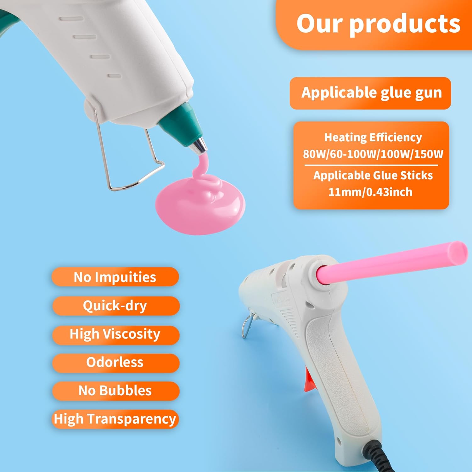 • 【Wide Application】hot glue gun sticks are perfect for crafting, card making, scrapbooking, carton sealing, phone case beauty, electronic appliances, gluing projects, waxing seal stamp, general repairs,creating arts, holiday crafts, decorations, home, office, school DIY and toys.