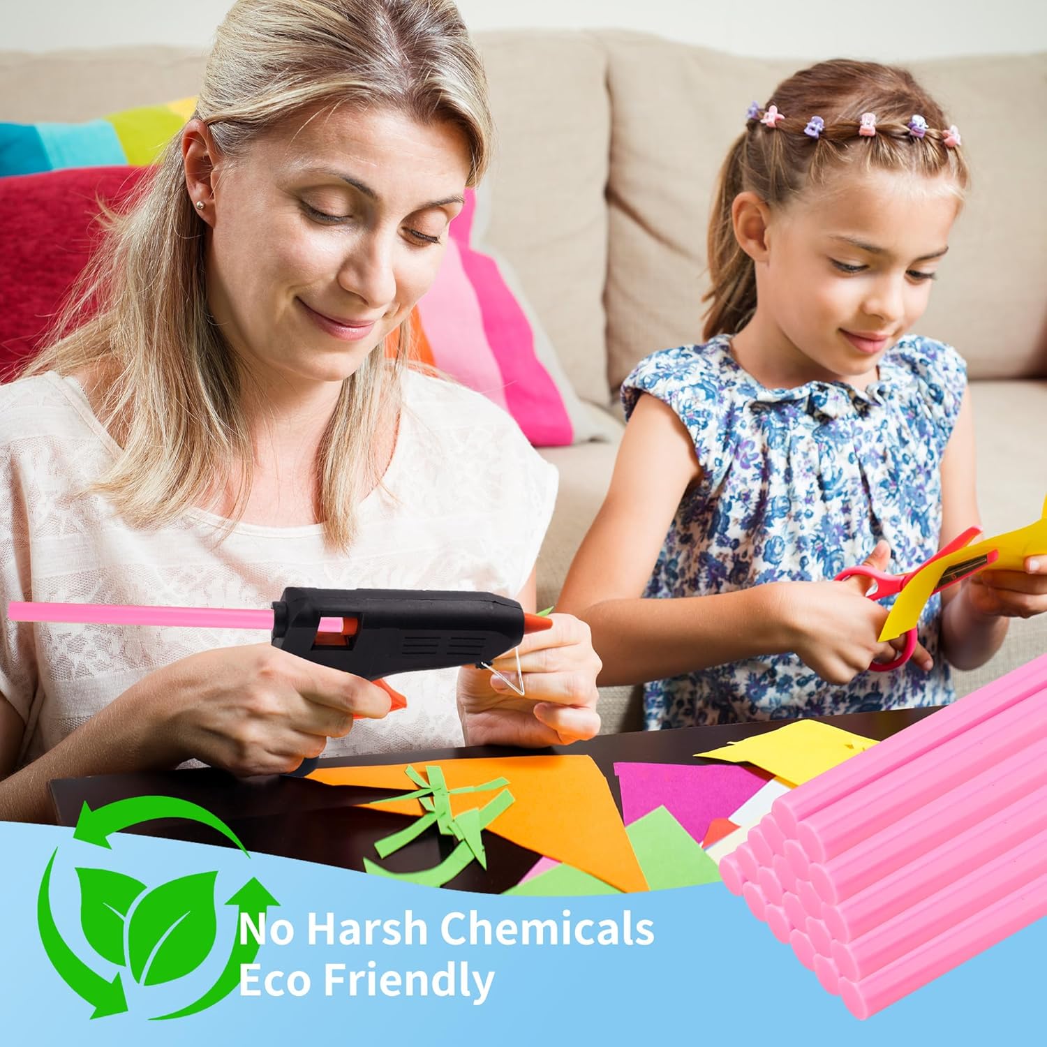 • 【Attention】ventilated, dry, cool place. Hot melt adhesive rods should be prevented from touching the skin when melting, so as not to burn Please use the glue sticks with adult supervision.