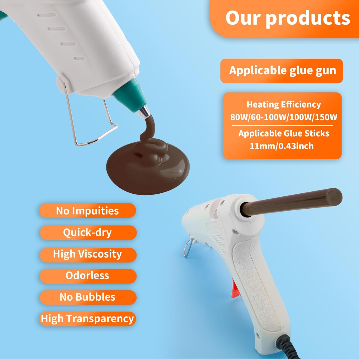 • 【Value Pack】52 pcs brown hot glue Sticks Full Size, 11mm/0.43 inch diameter and 200mm/8 inch Length, Long hot glue sticks smooth operation, No need to change glue sticks Frequently, for variety holiday decorations, crafts, arts creation gluing projects and most repair use
