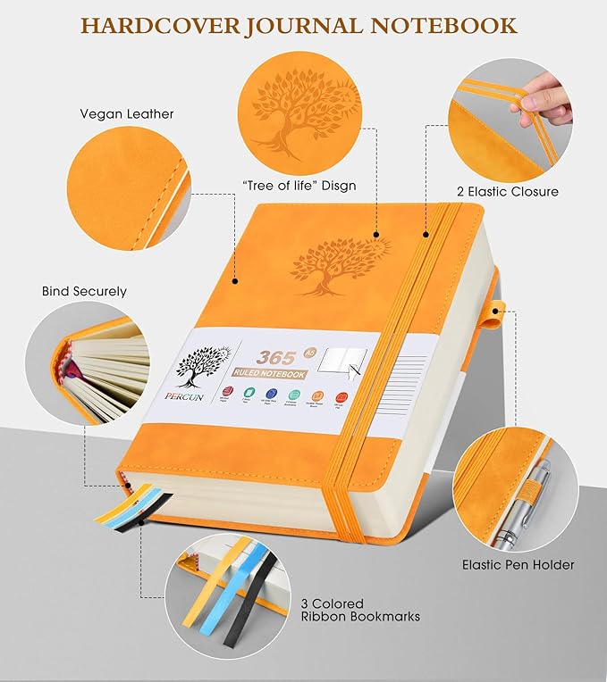 • 【365 Pages Premium Thick Paper】: Our PERCUN lined journal notebook is made of 365 pages high-quality 100Gsm thick ruled pager with an acid-free light Ivory paper that is thicker than normal. This premium quality paper will not cause bleeding, ghosting or smudging and is suitable for most types of pens,provides ample space for journaling, note-taking, and creative writing. The line spacing is 7mm, making it easy to write legibly and neatly.