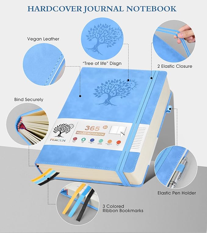 • 【365 Pages Premium Thick Lined Paper】: Our PERCUN lined journal notebook is made of 365 pages high-quality 100Gsm thick ruled pager with an acid-free light Ivory paper that is thicker than normal. This premium quality paper will not cause bleeding, ghosting or smudging and is suitable for most types of pens,provides ample space for journaling, note-taking, and creative writing. The line spacing is 7mm, making it easy to write legibly and neatly.